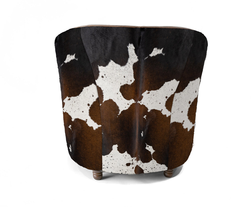 Custom Leather Barrel Chair - Brown Leather with Black and White Reddish Cowhide Accents