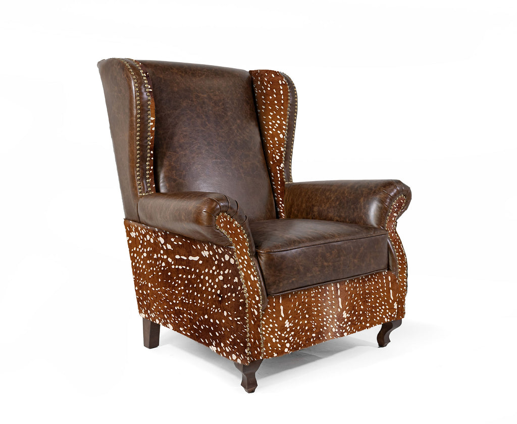 Custom Wingback Chair with Hair On Cowhide Accents - Antelope Print