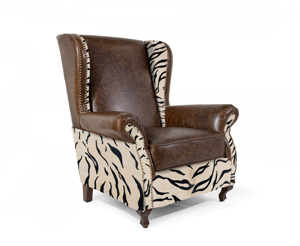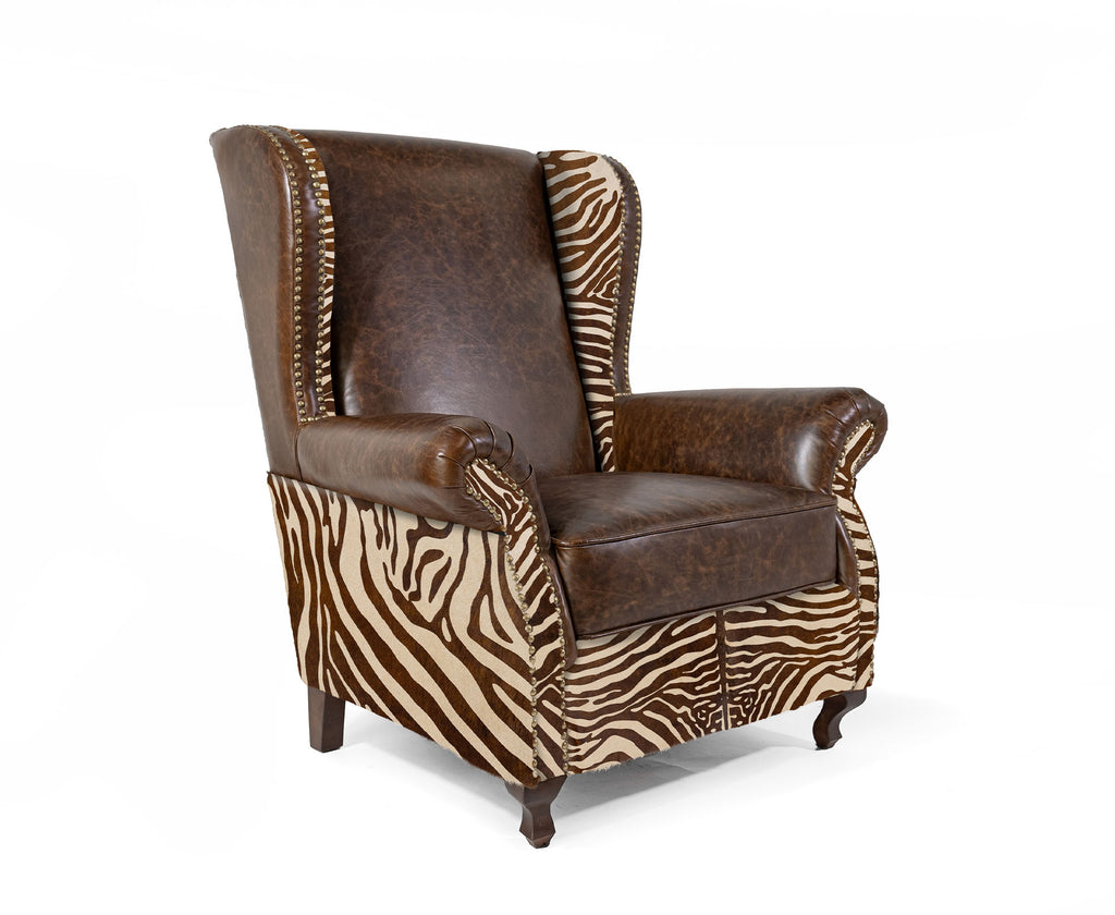 Custom Wingback Chair with Hair On Cowhide Accents - Zebra Print