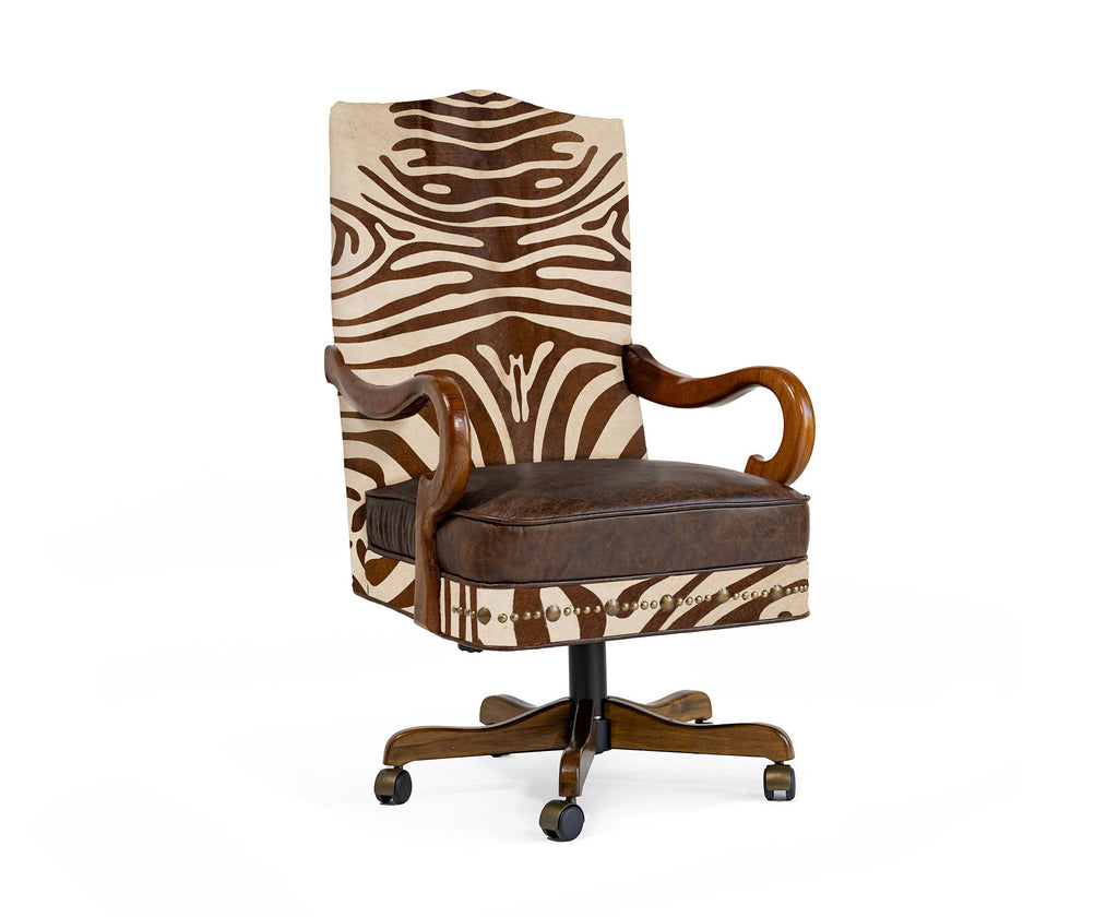 Custom Office Chair with Hair On Cowhide Accents - Zebra Print