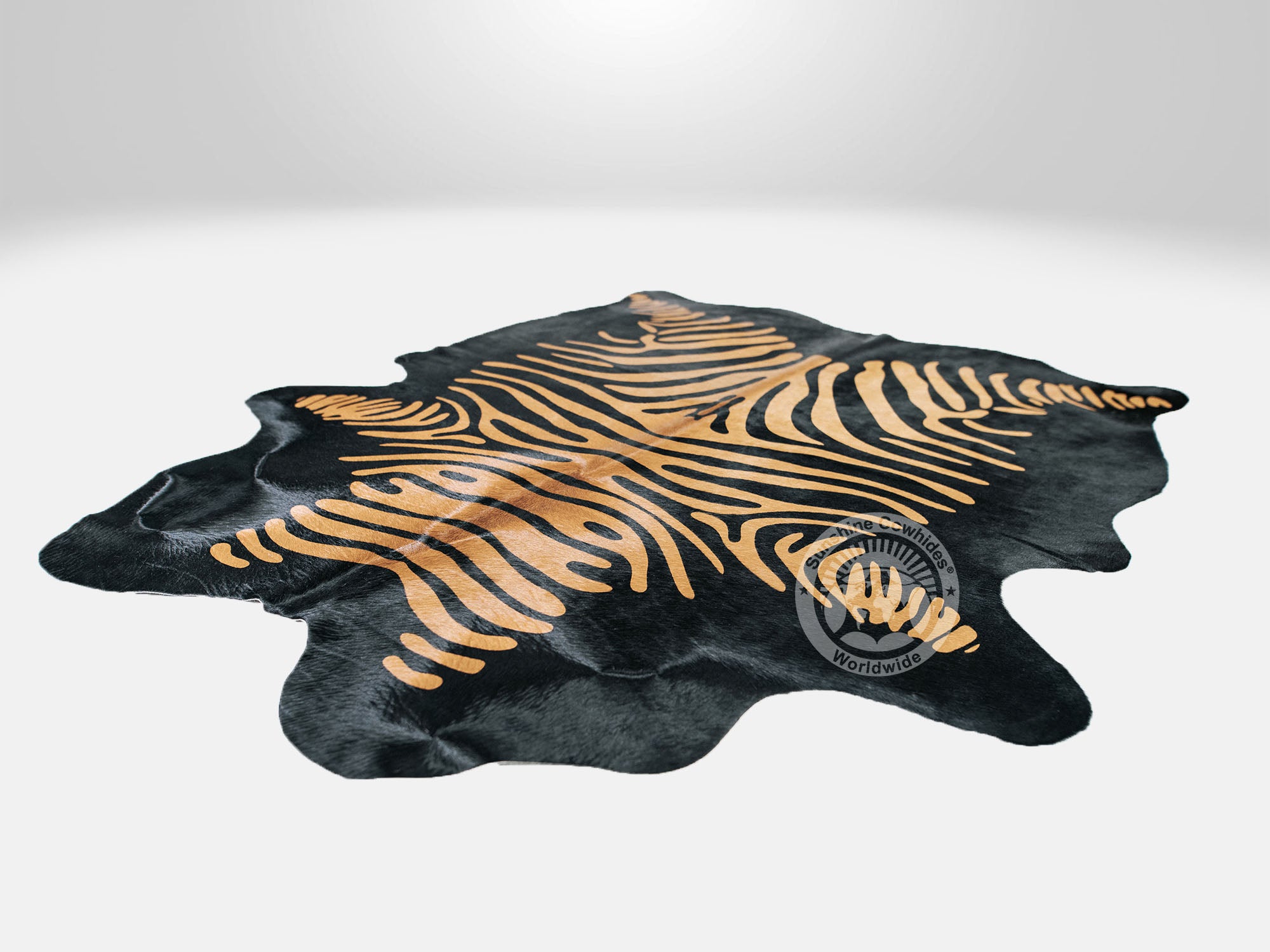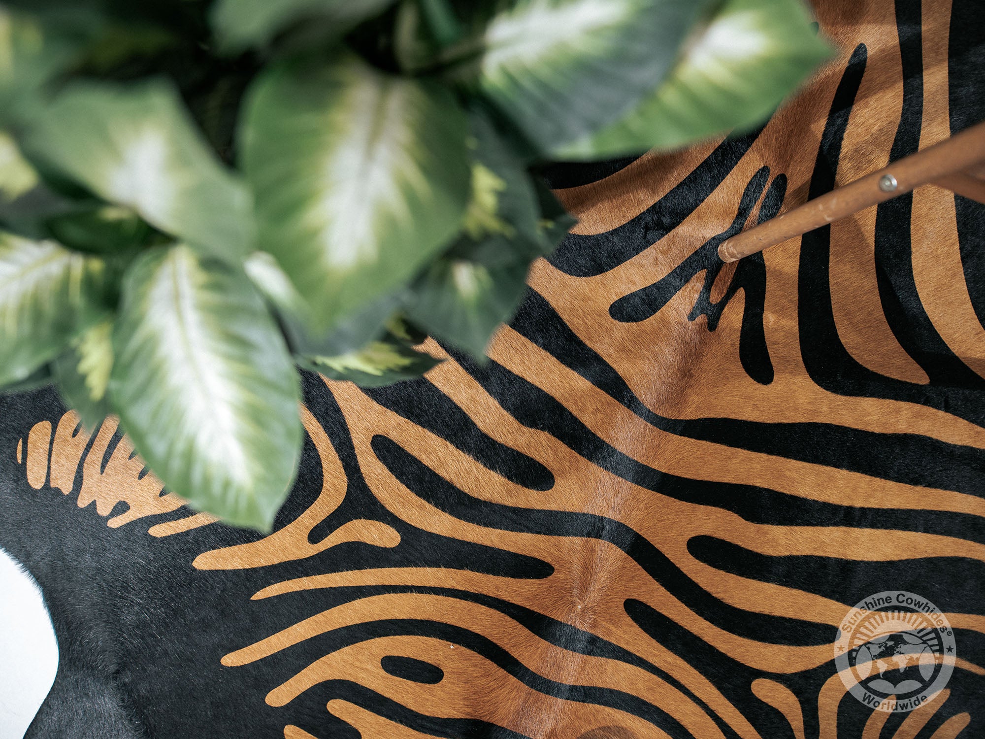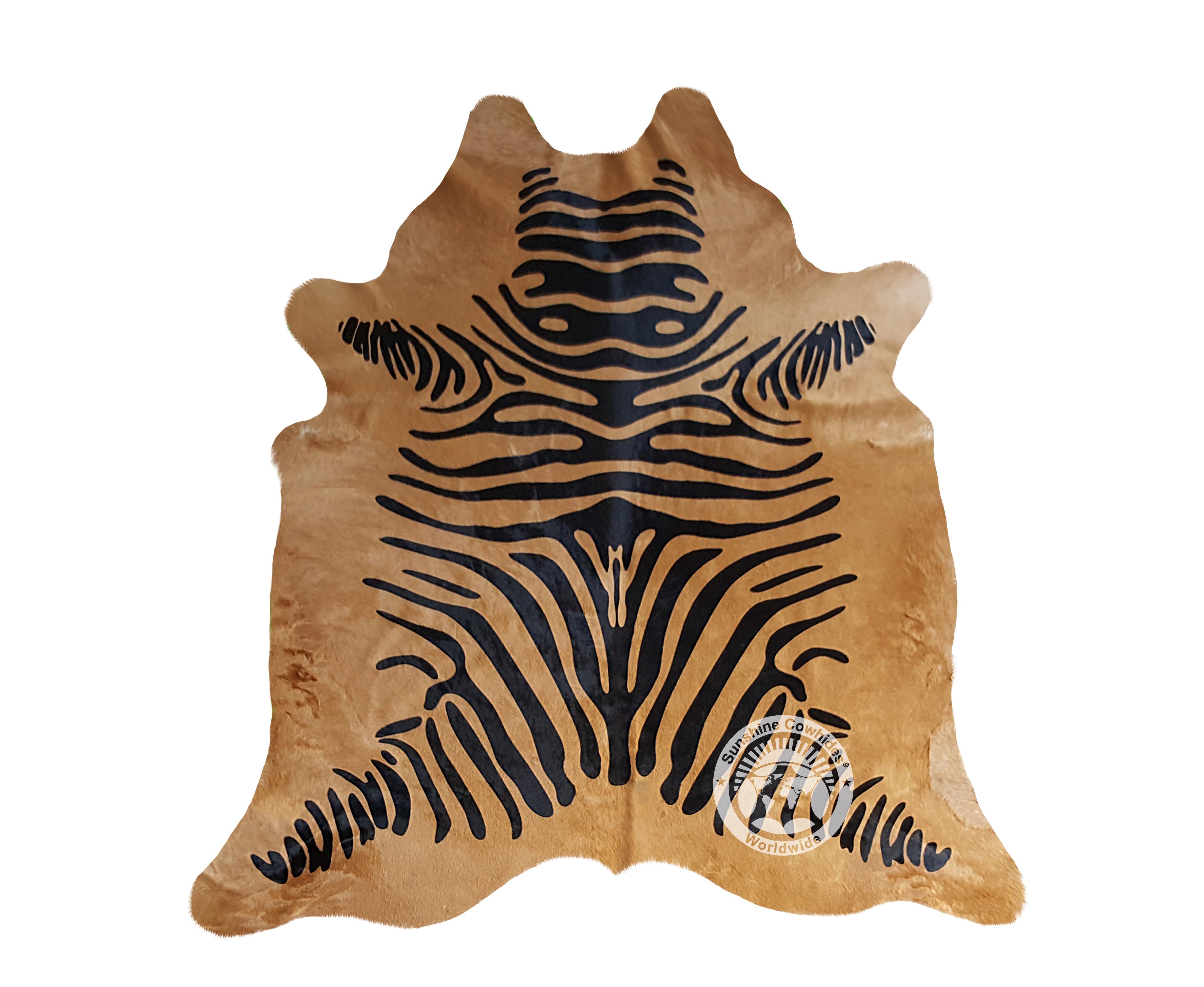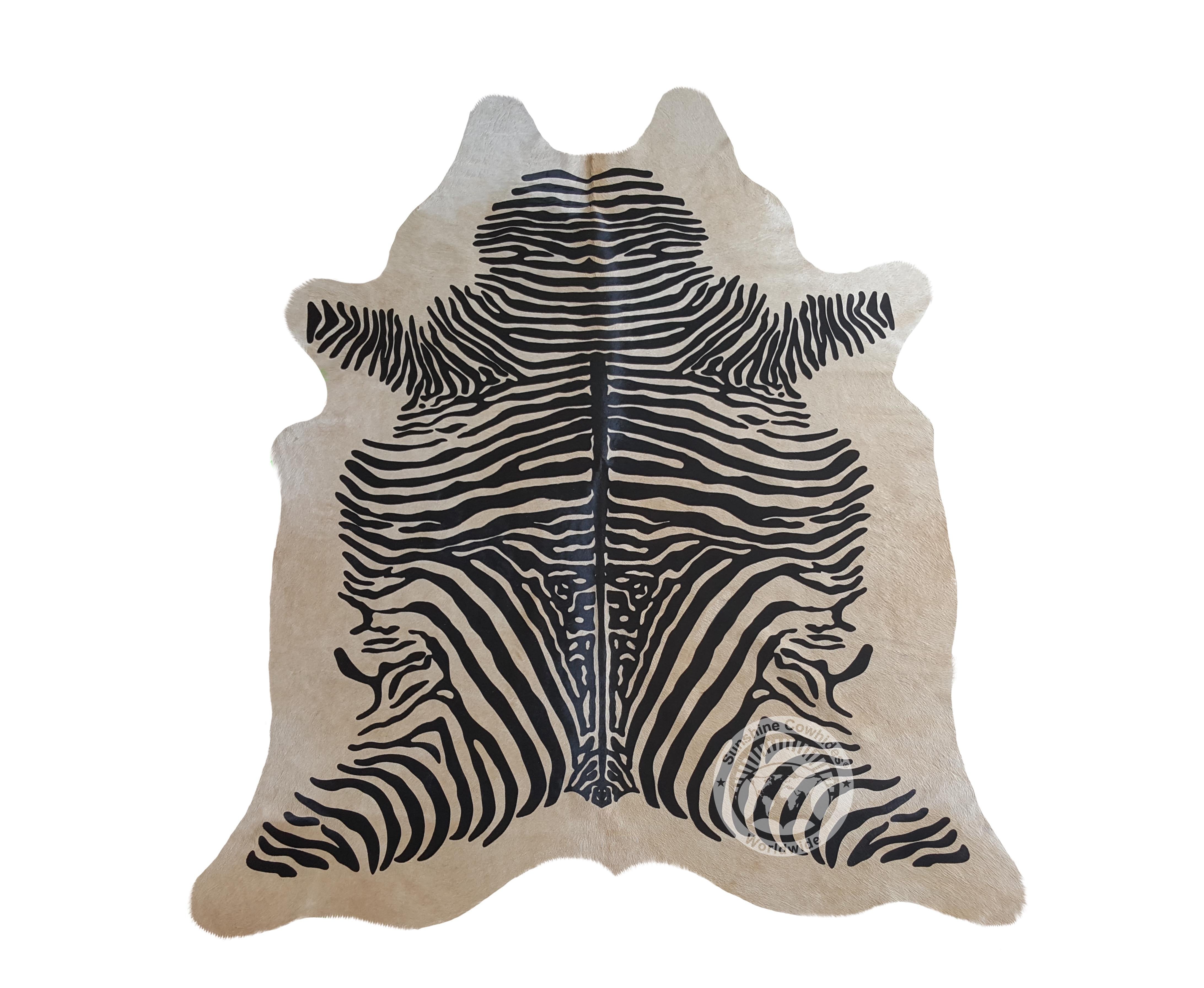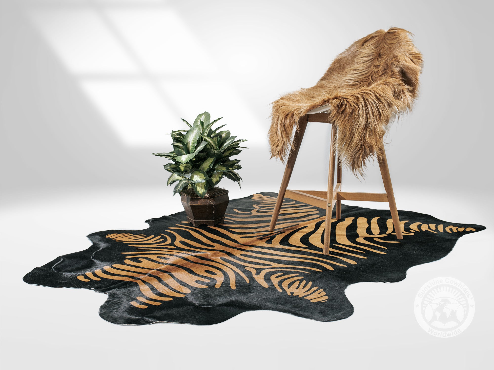 Zebra Wild Black Stripes on Beige Cowhide Rug