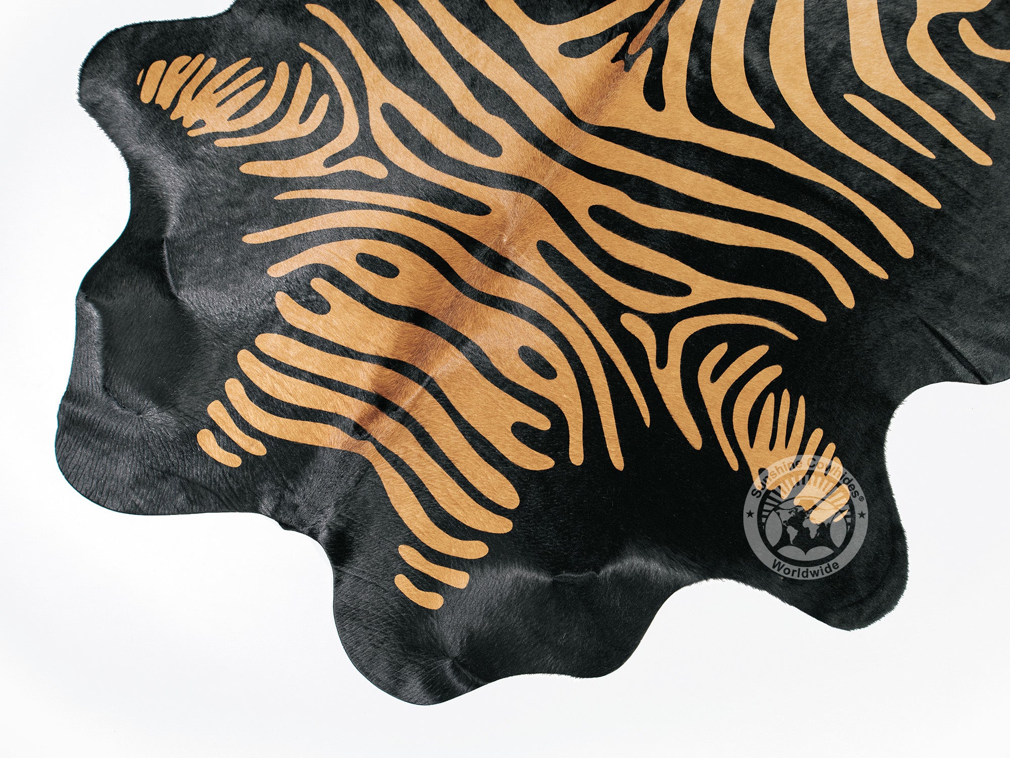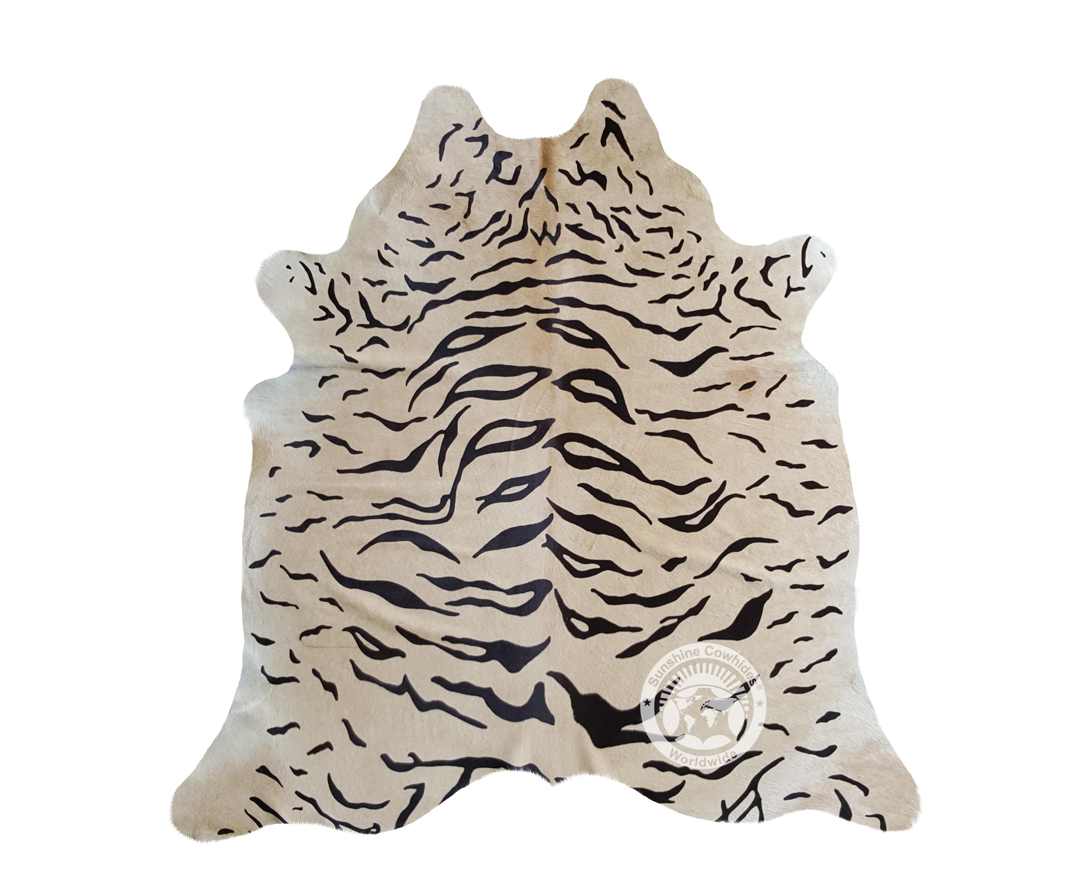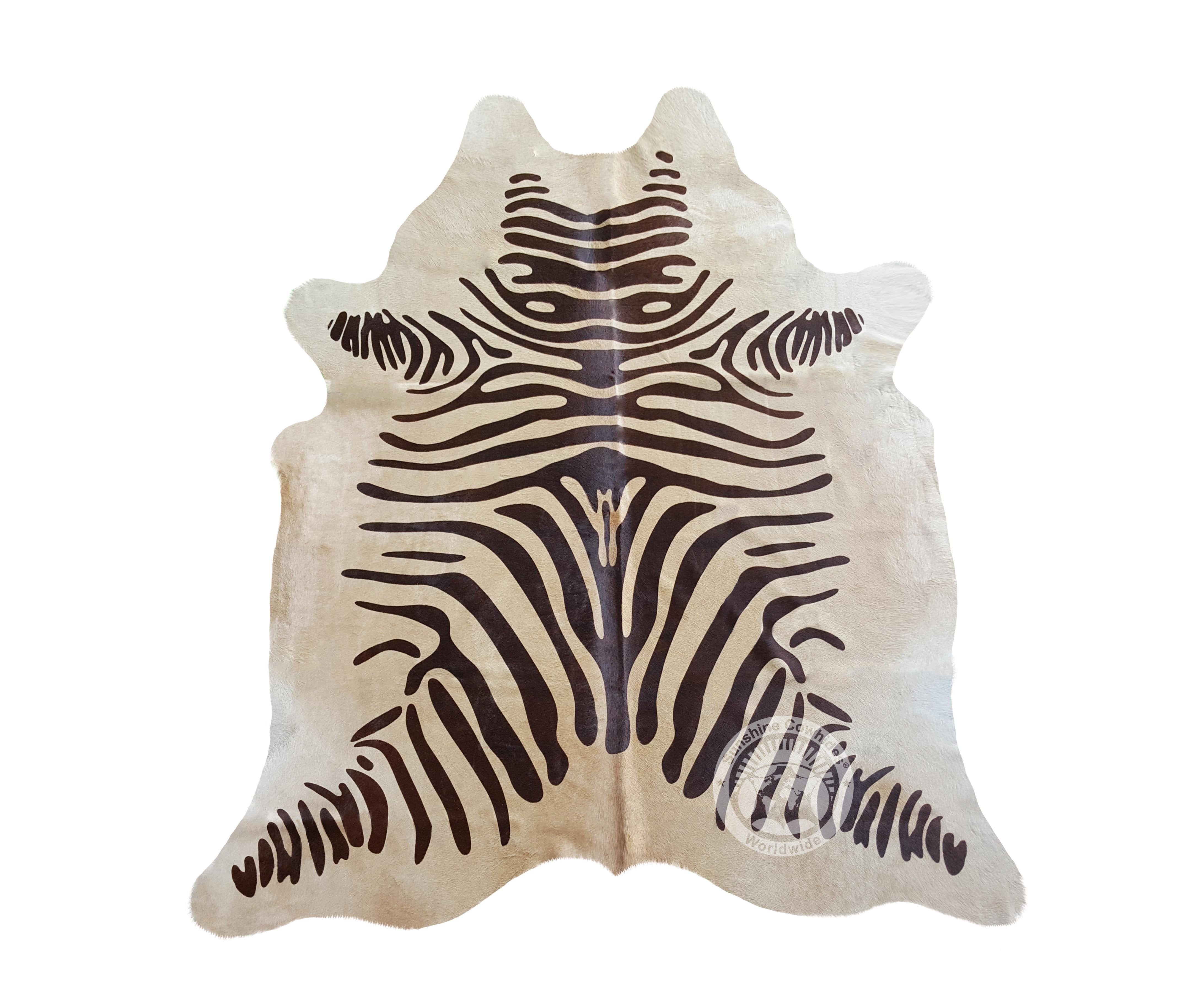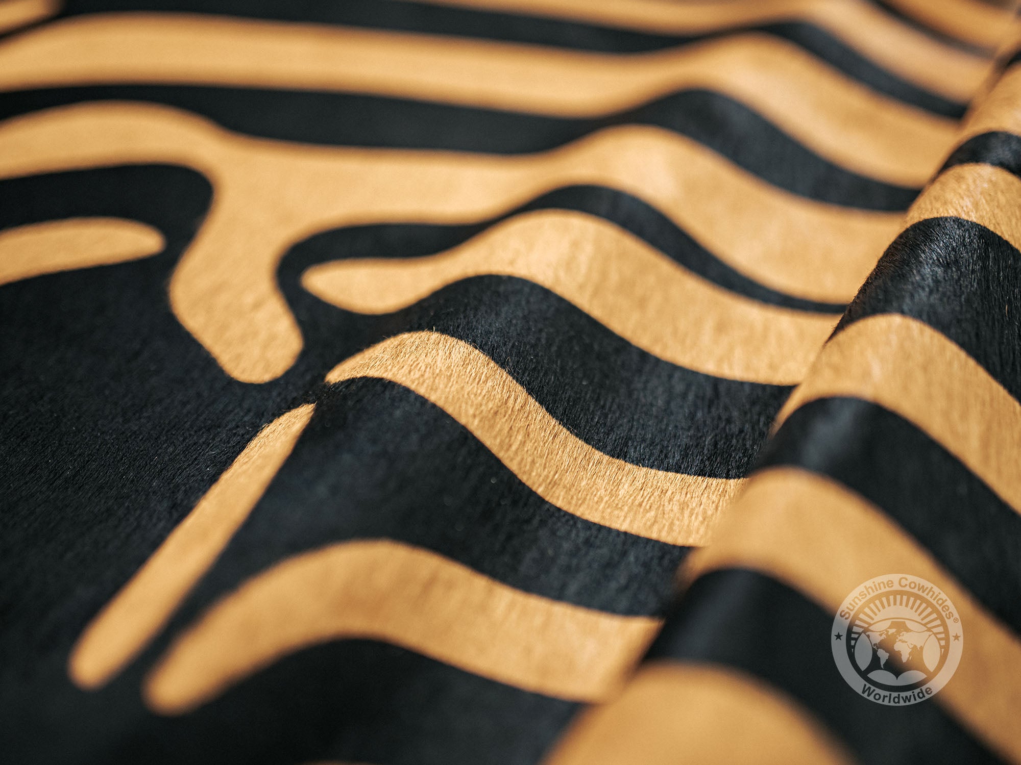 Zebra Wild Black Stripes on Beige Cowhide Rug