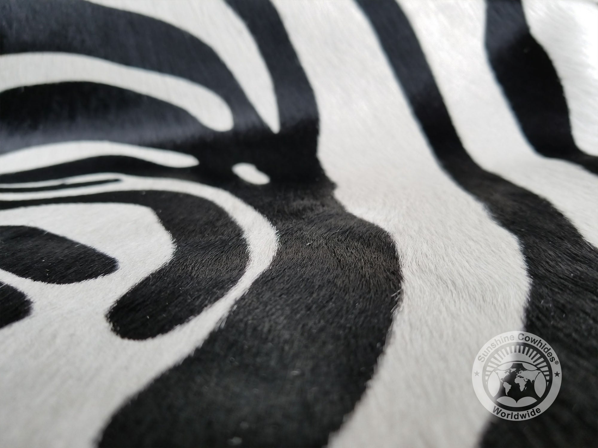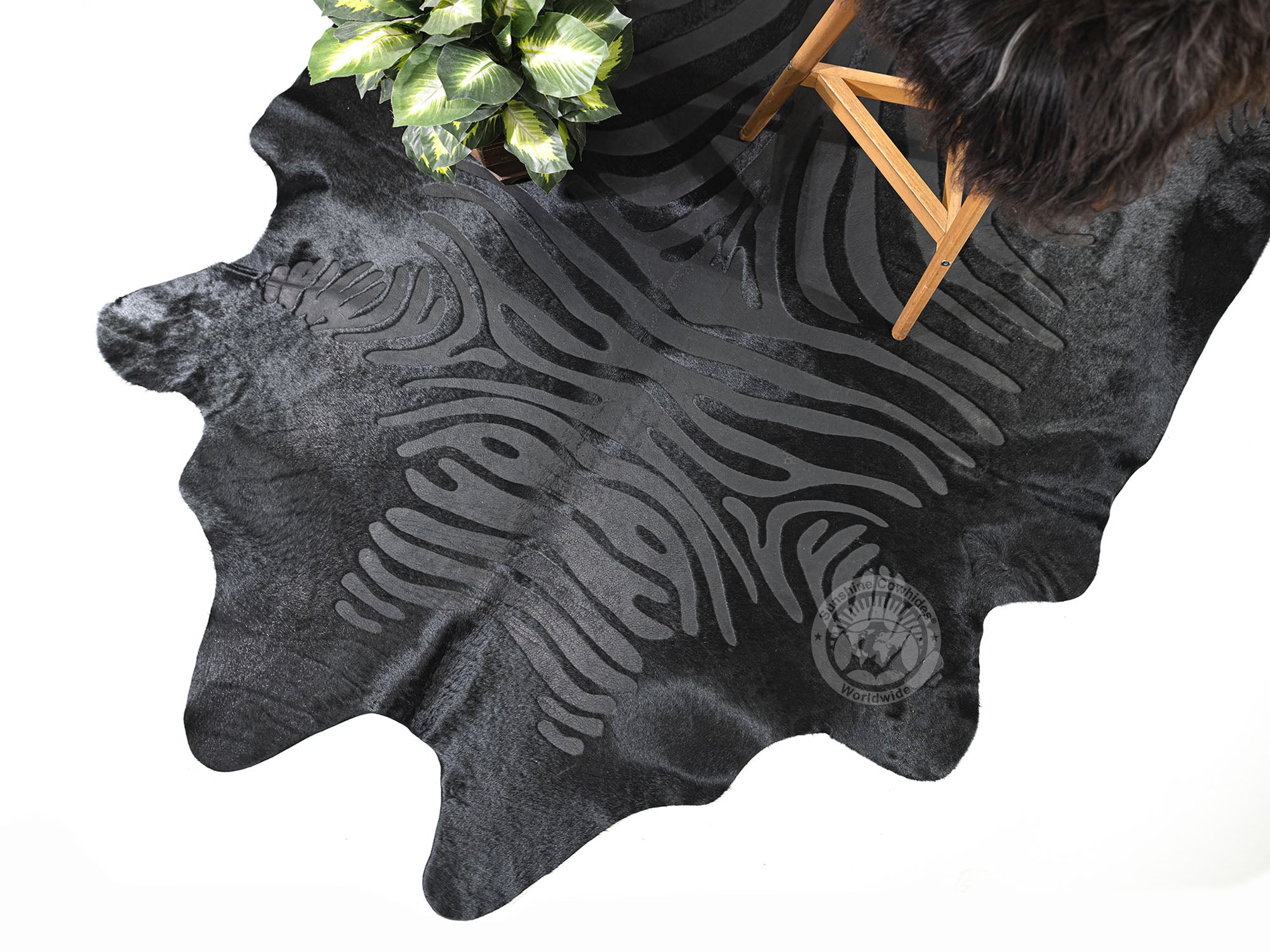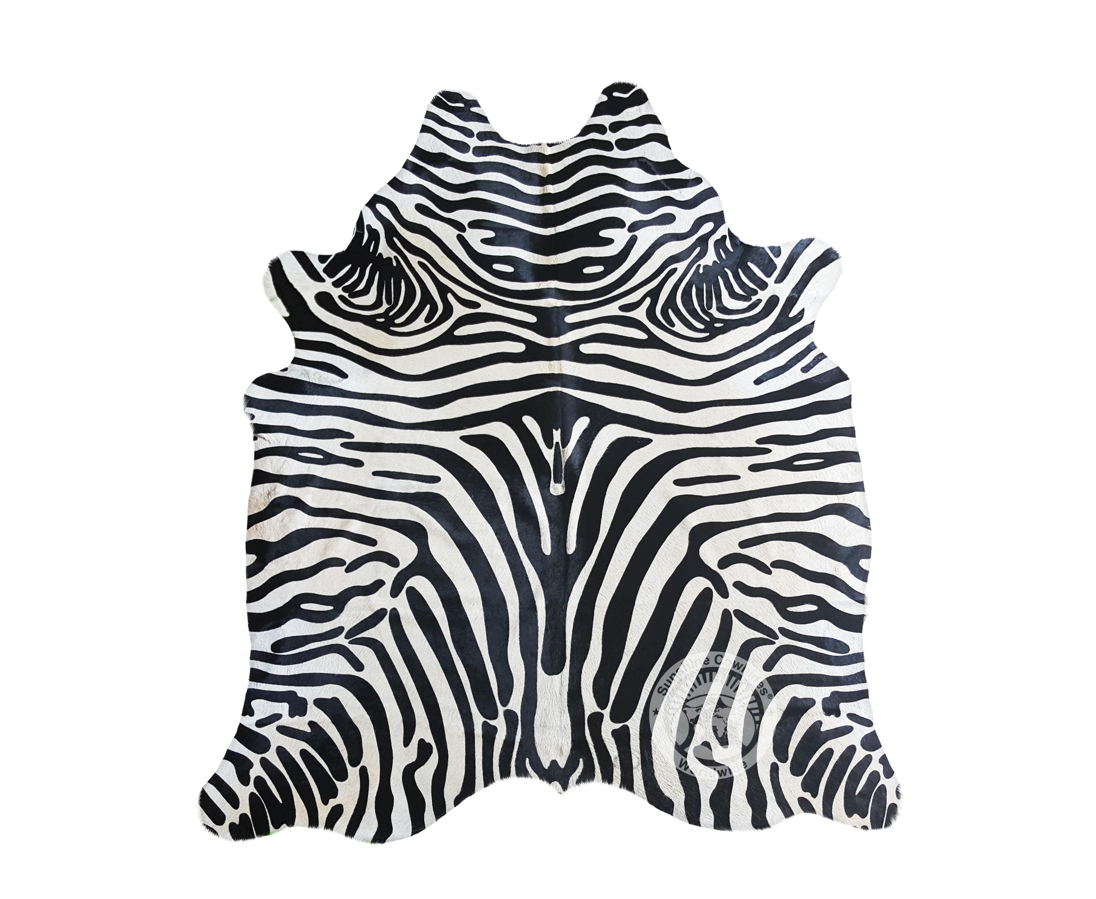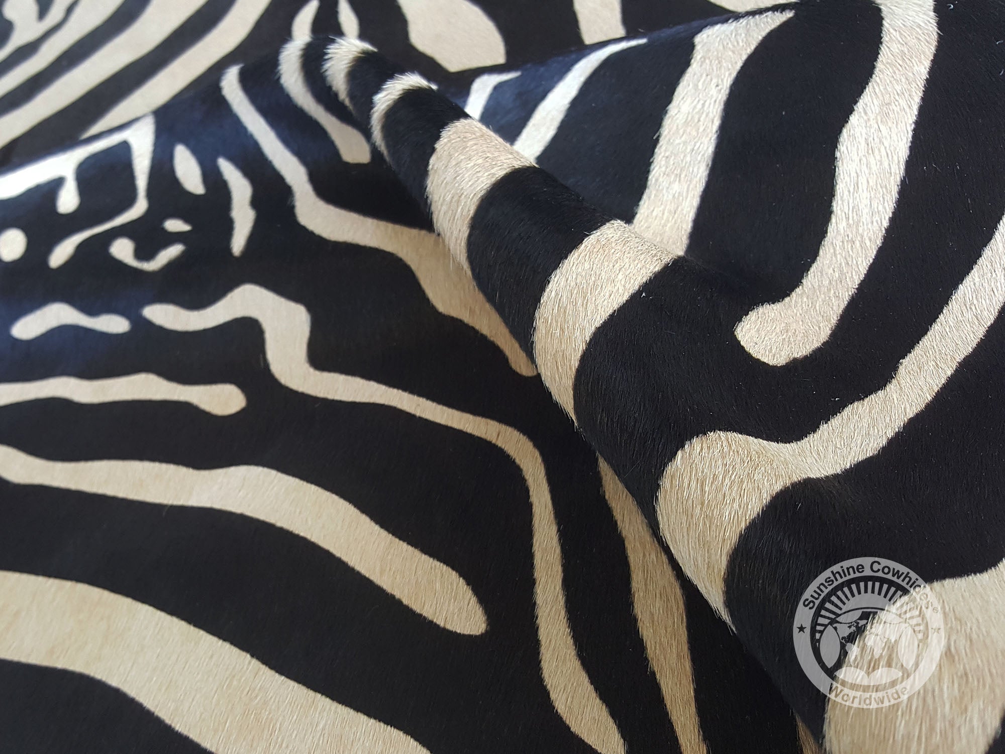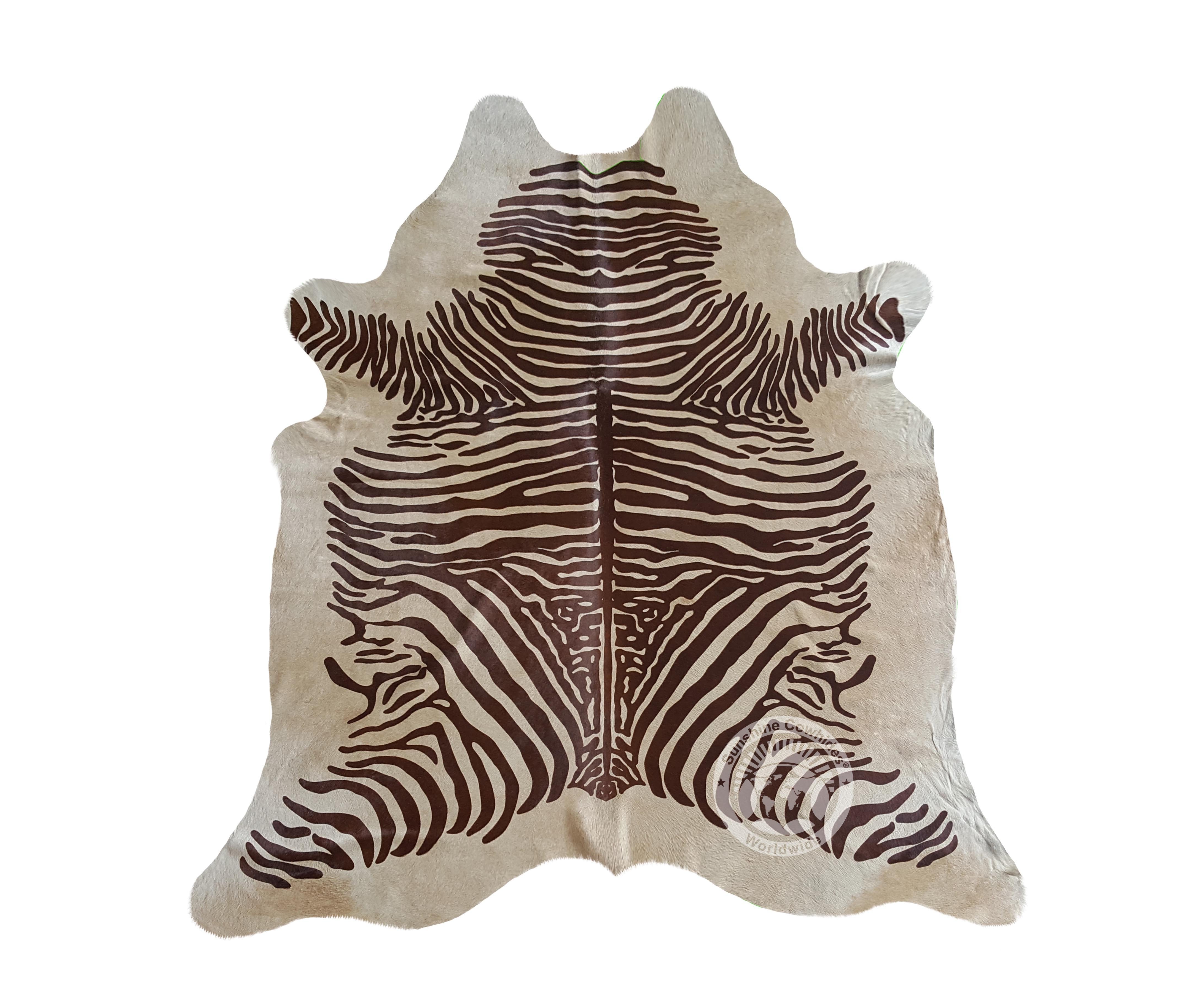 Zebra Wild Black Stripes on Beige Cowhide Rug