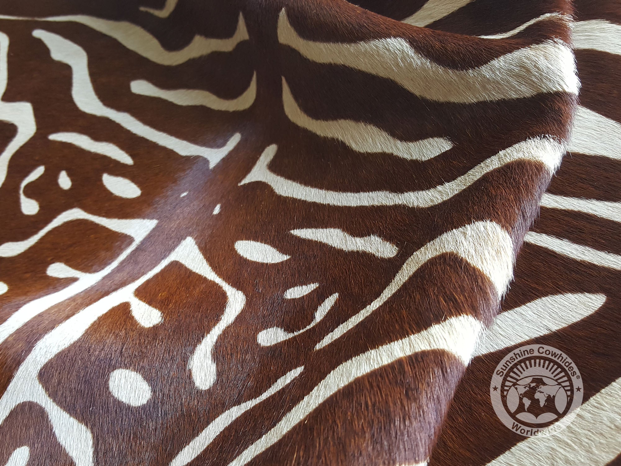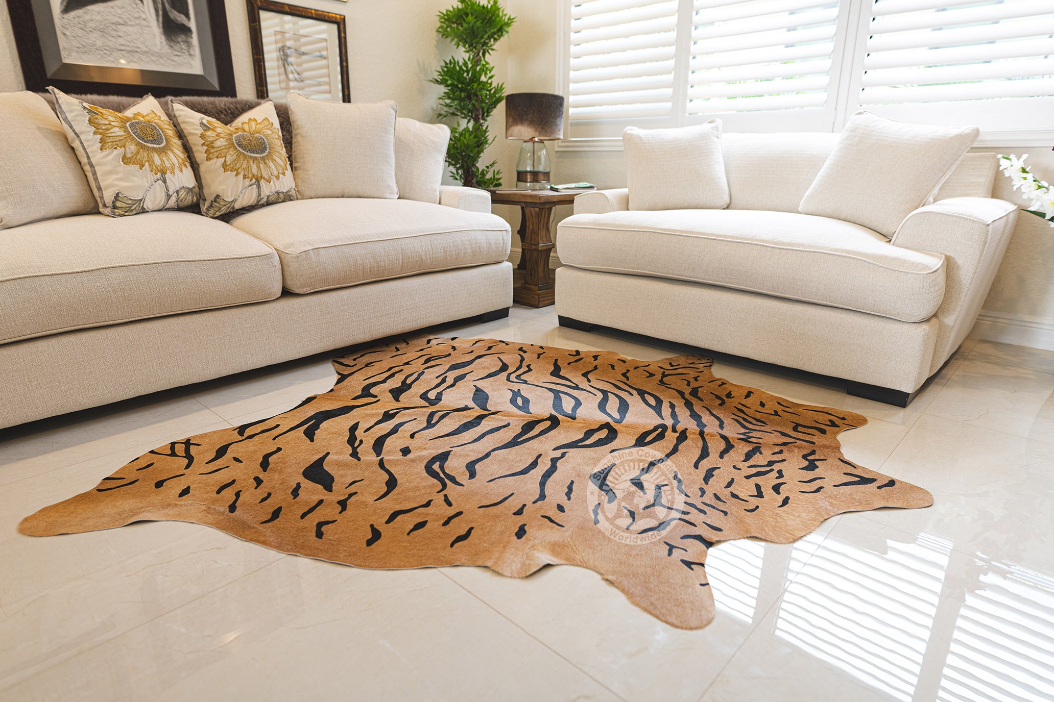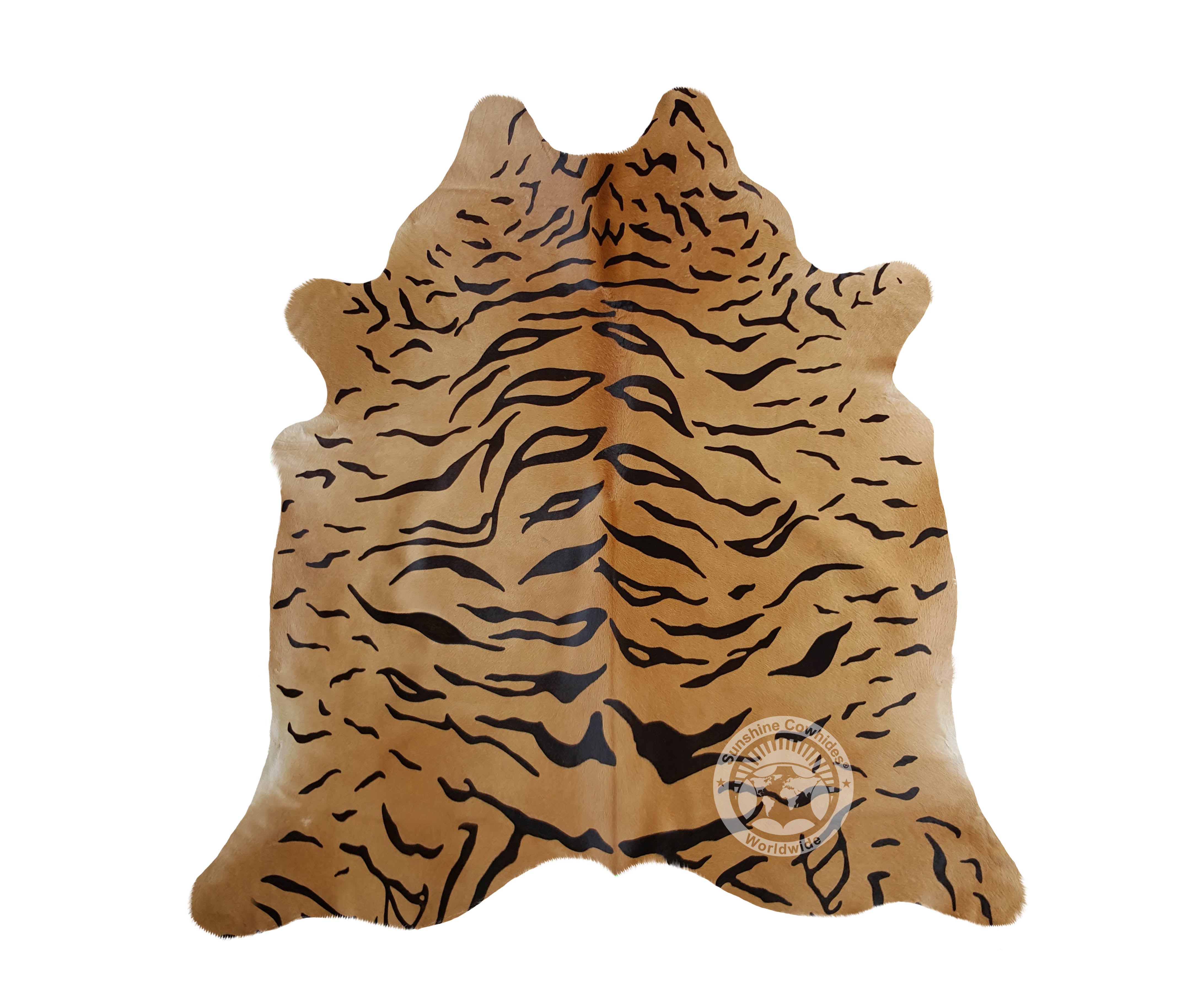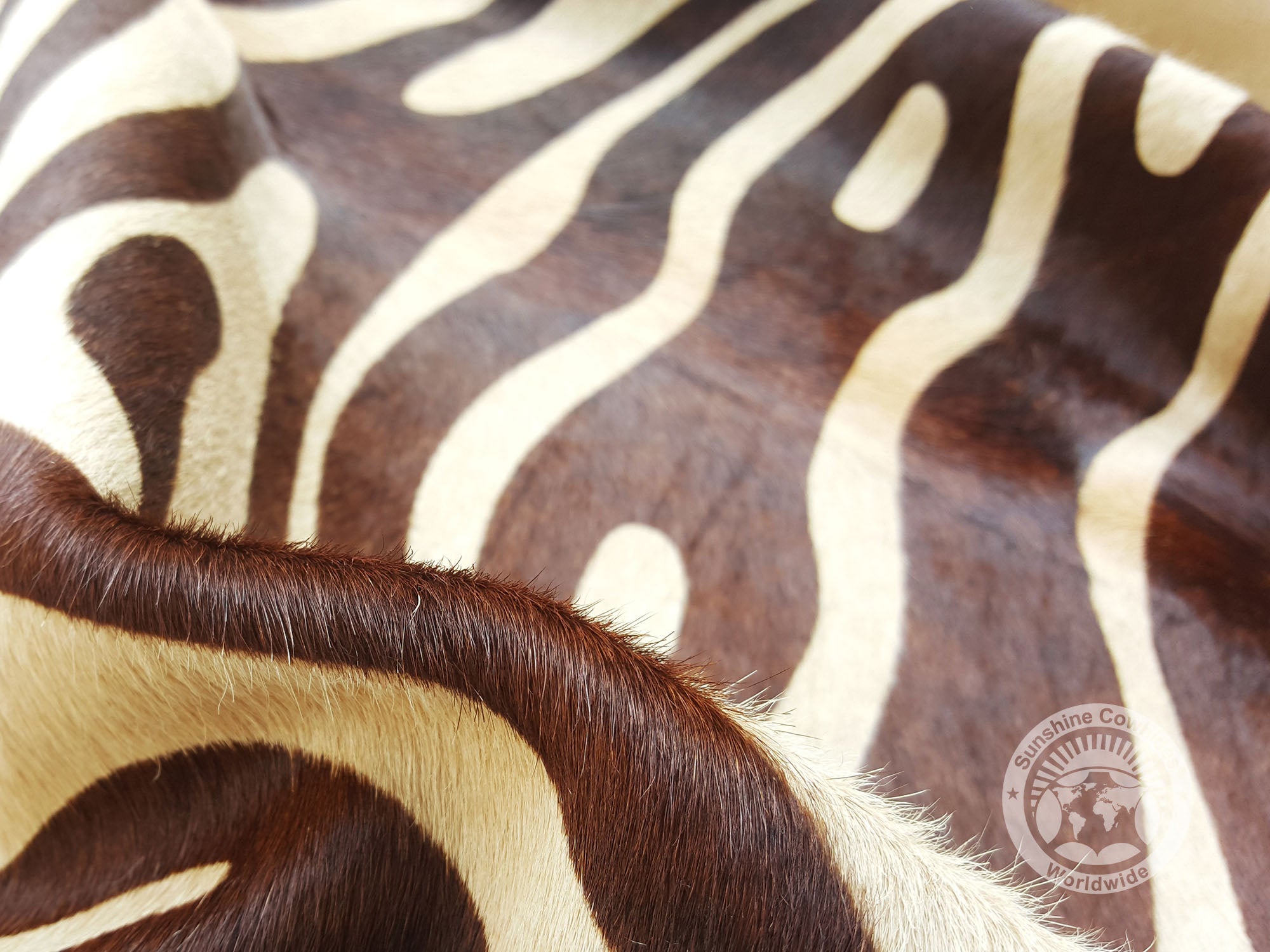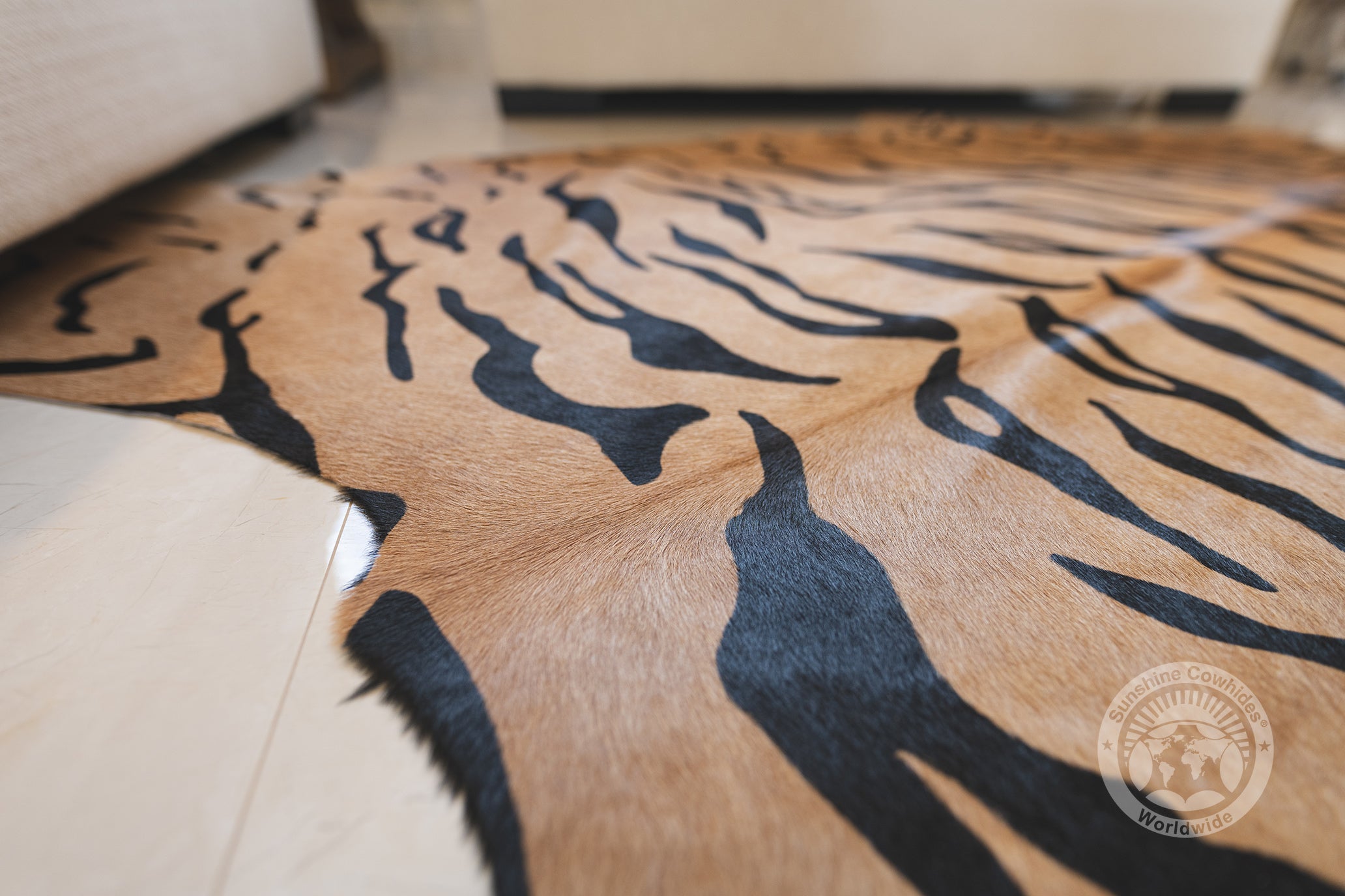 Zebra Wild Black Stripes on Beige Cowhide Rug