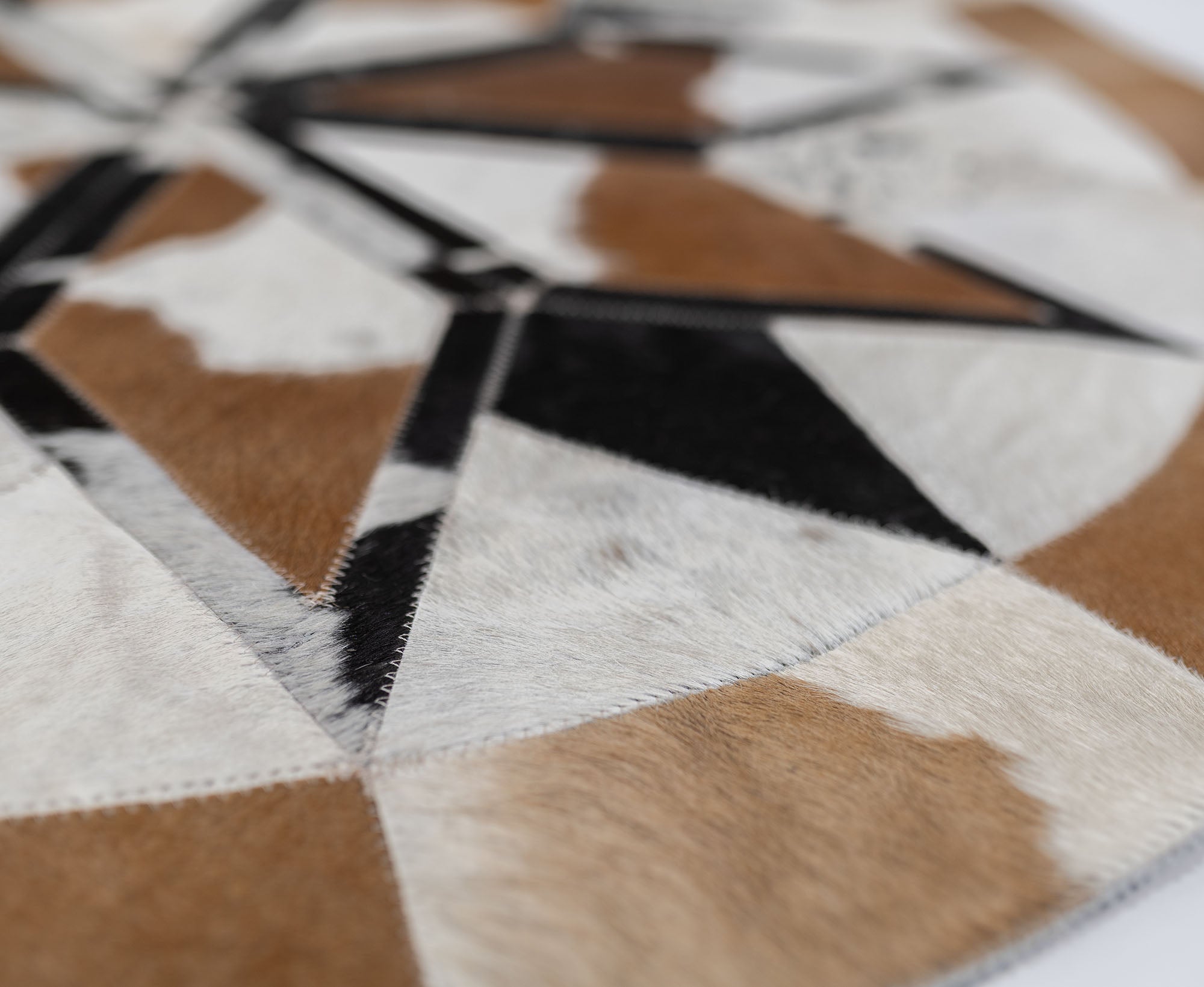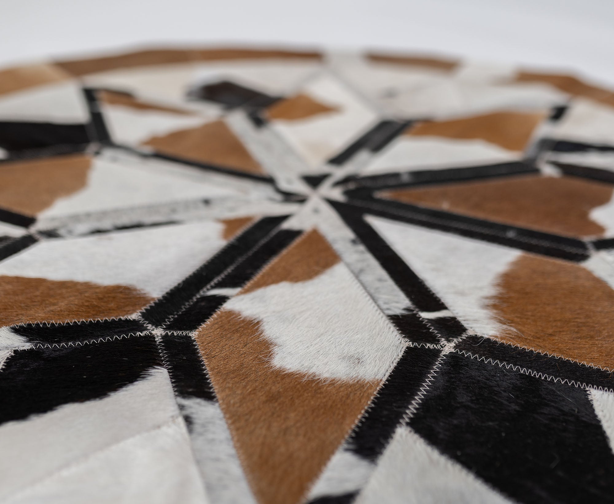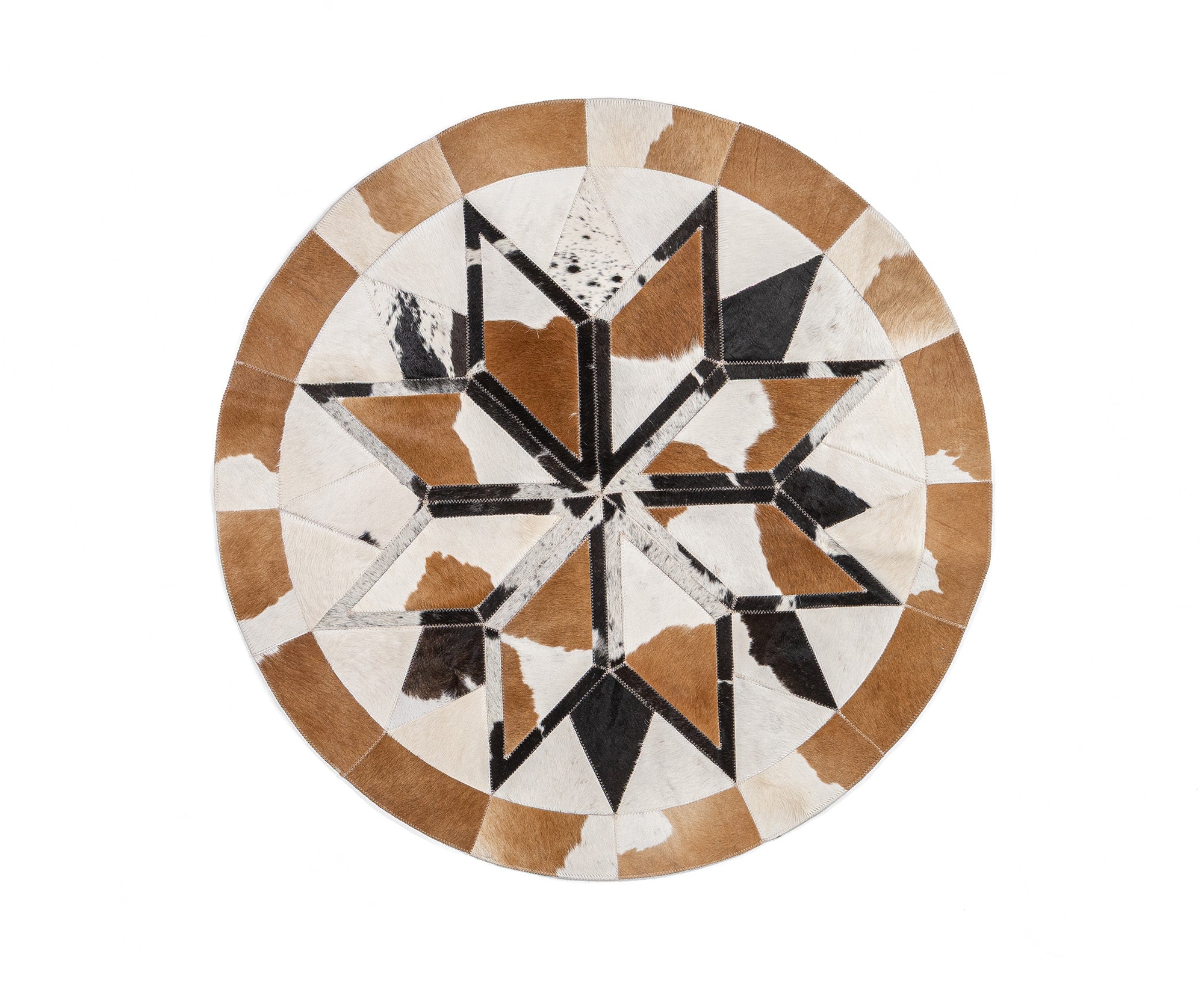 No two Round Cowhide Rugs look the same as our factory creates unique pieces of RODEO ROUND RUGS