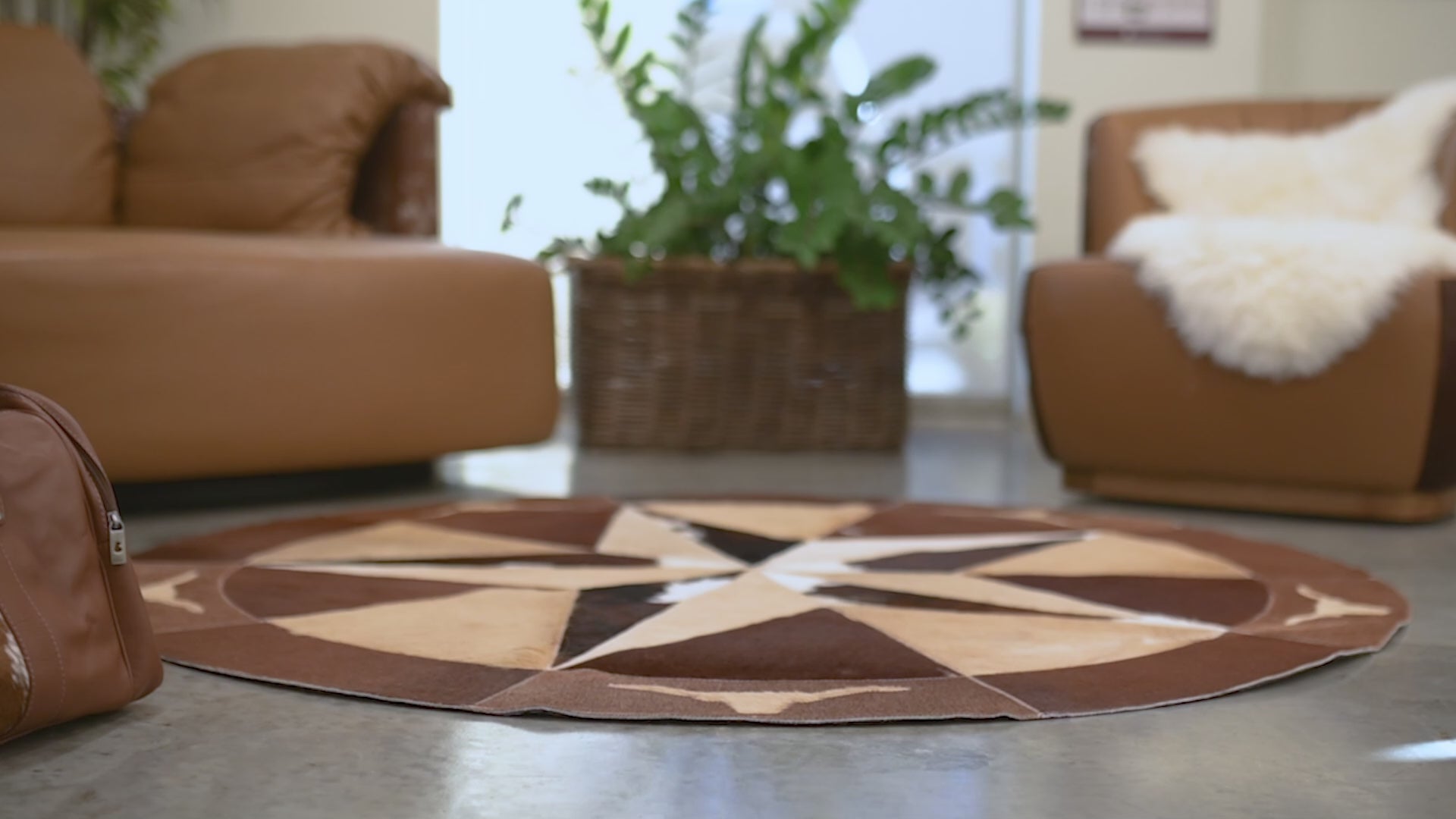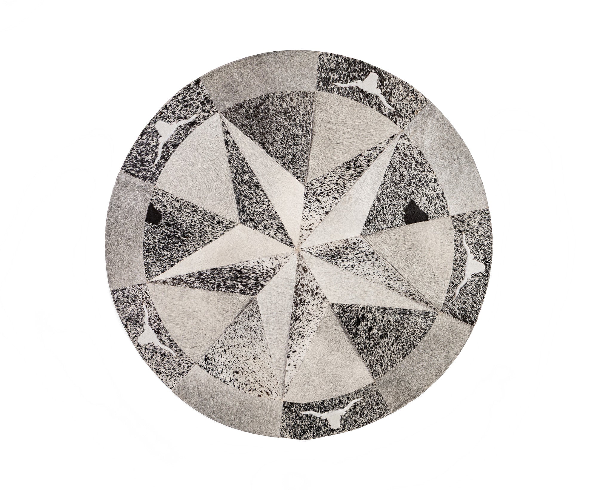 No two Round Cowhide Rugs look the same as our factory creates unique pieces of RODEO ROUND RUGS