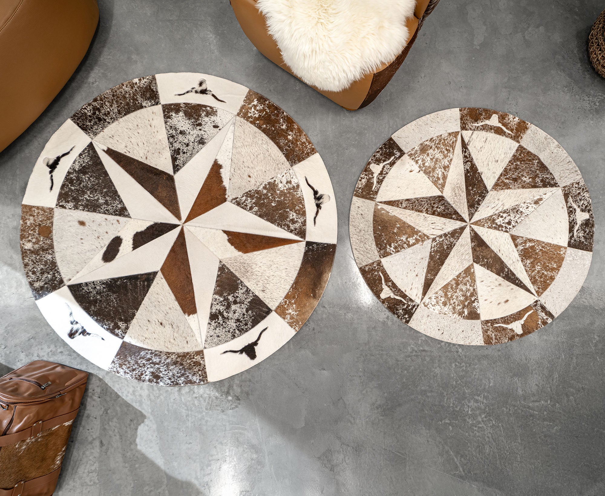 No two Round Cowhide Rugs look the same as our factory creates unique pieces of RODEO ROUND RUGS