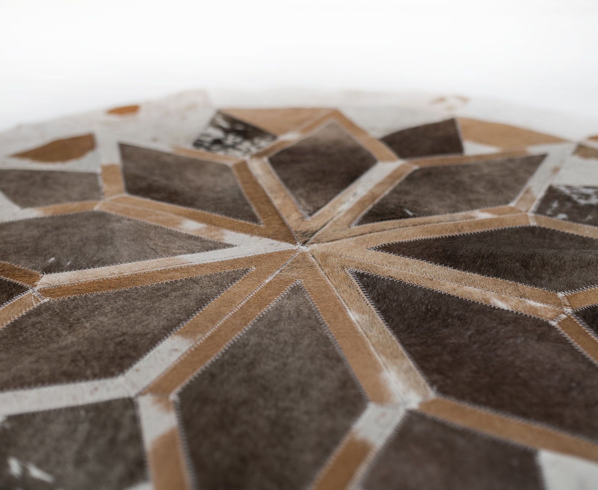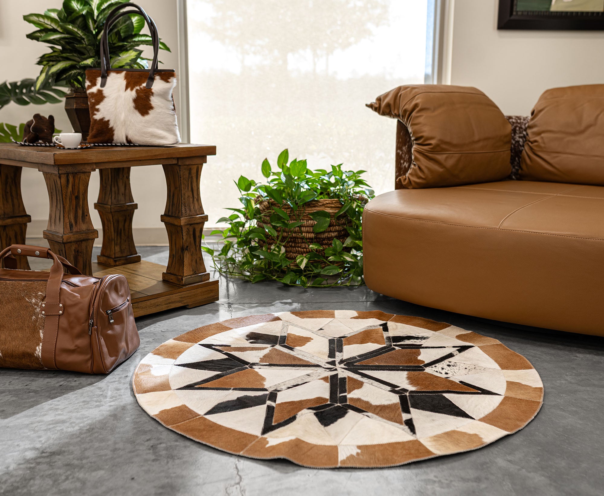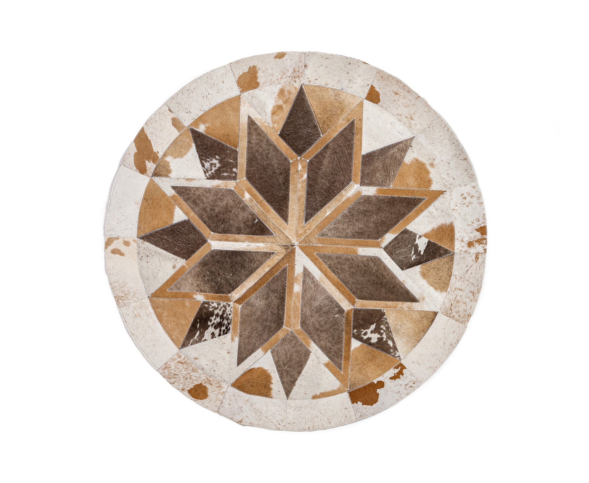 No two Round Cowhide Rugs look the same as our factory creates unique pieces of RODEO ROUND RUGS