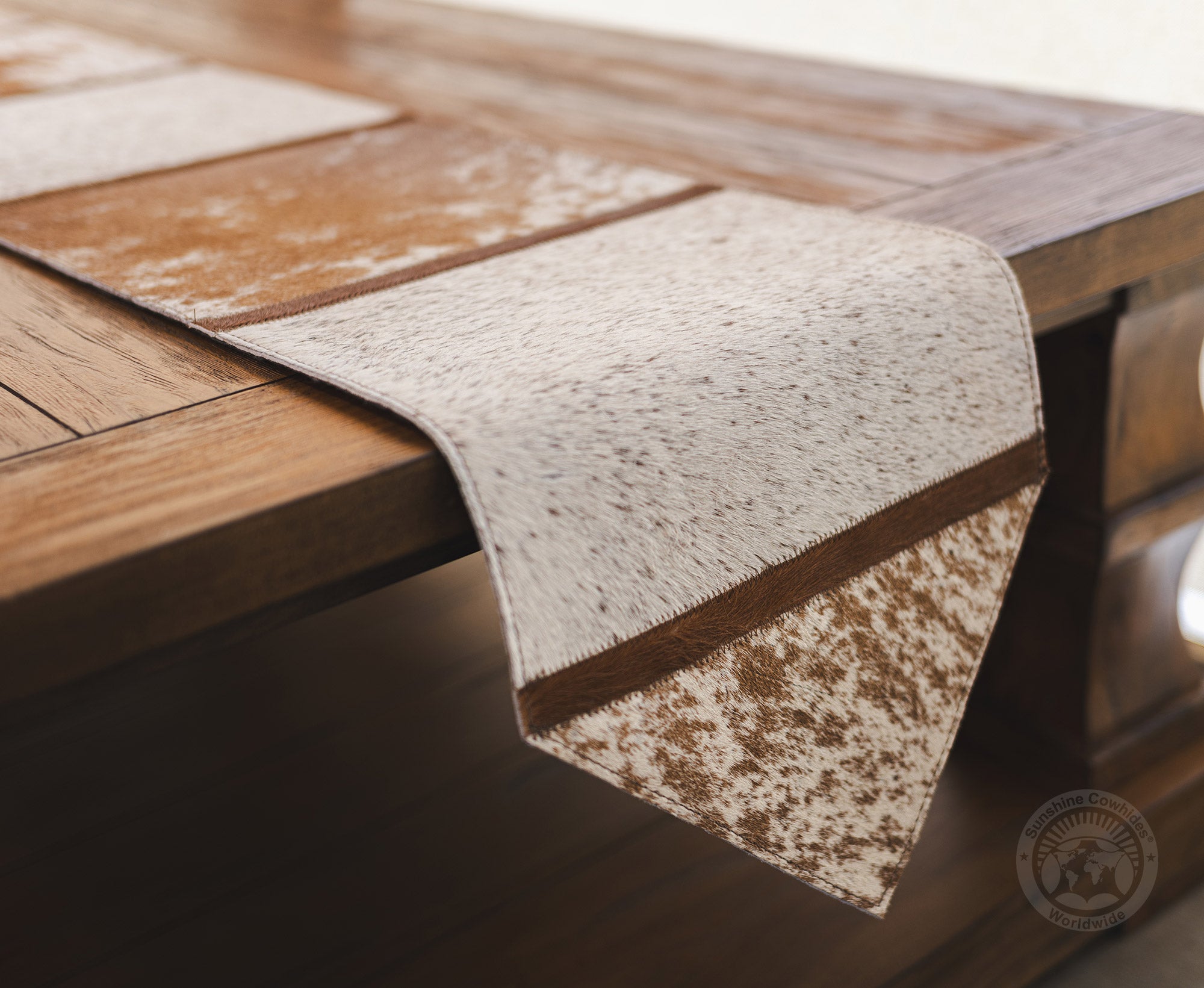 COWHIDE TABLE RUNNER - SALT & PEPPER BROWN & WHITE