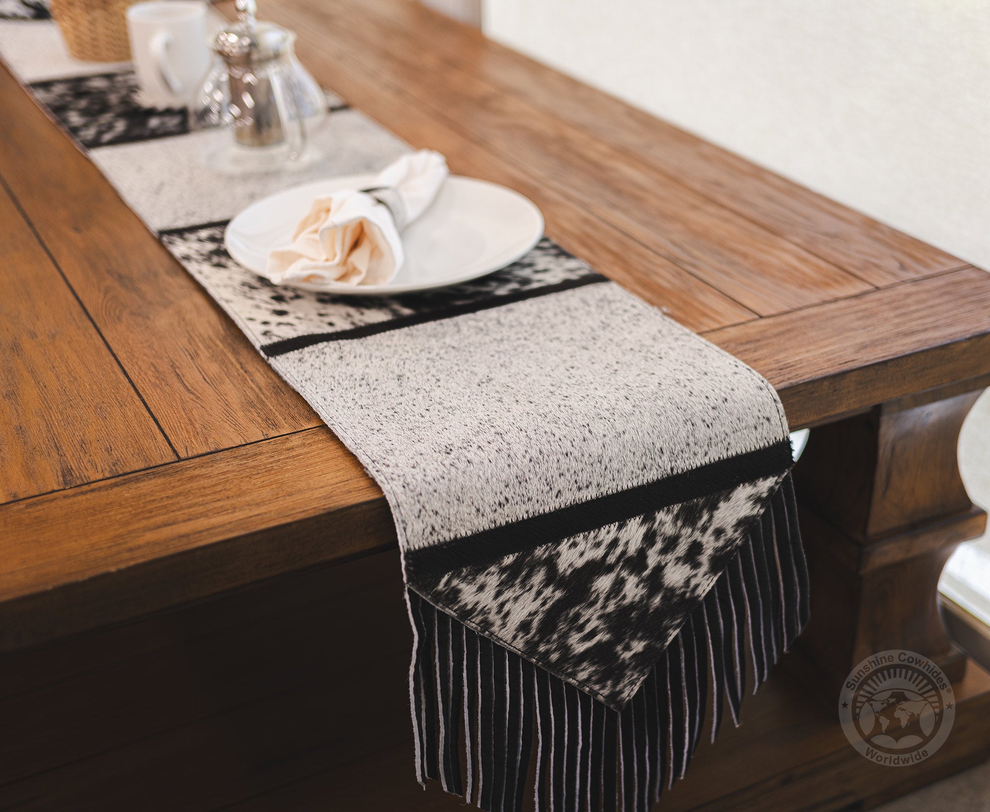 COWHIDE TABLE RUNNER - PLAIN WITH FRINGE