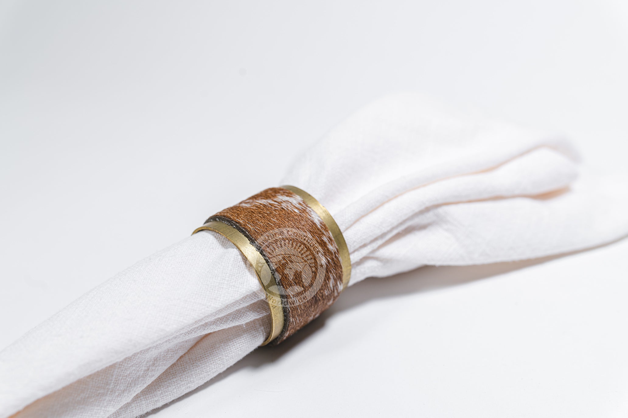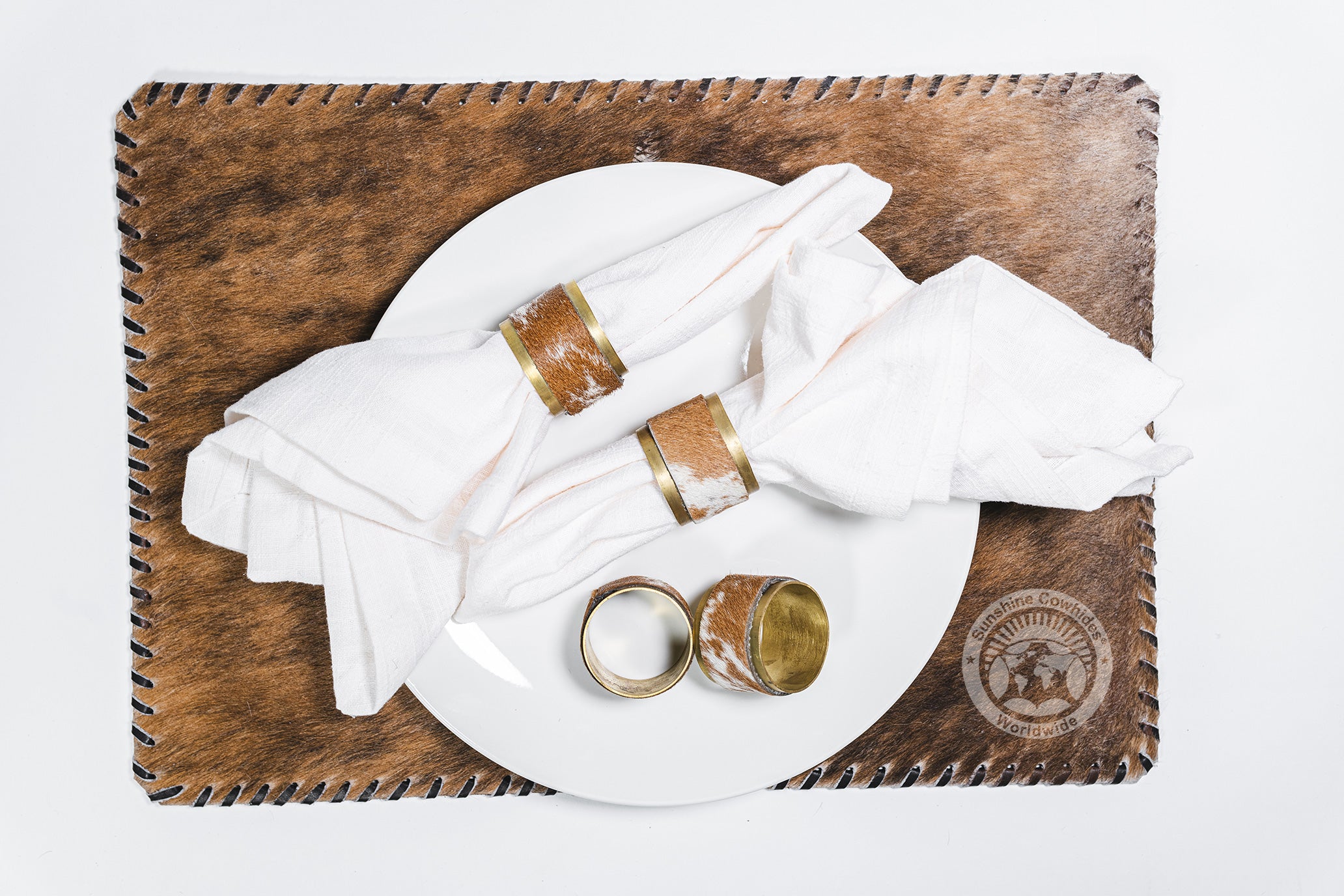 COWHIDE NAPKIN HOLDER - NAPKIN RINGS - RUSTIC COPPER + COWHIDE