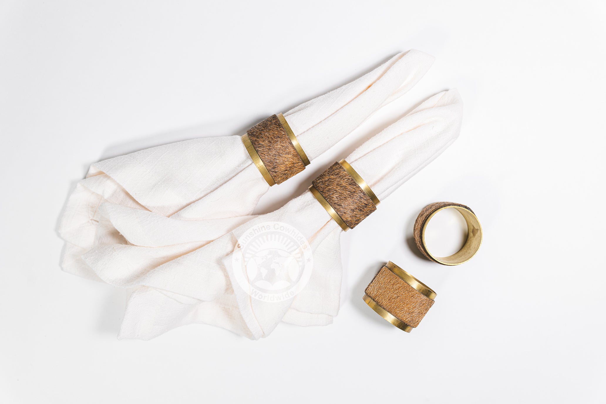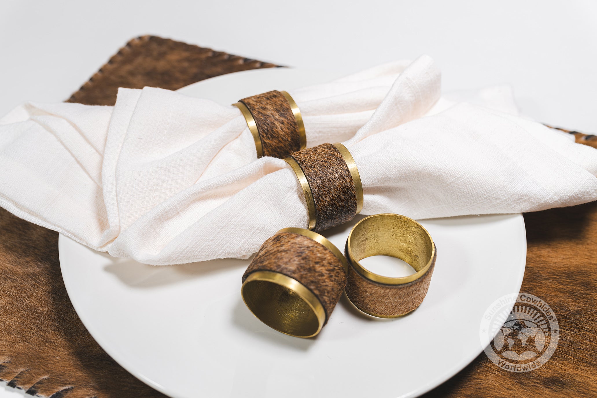 COWHIDE NAPKIN HOLDER - NAPKIN RINGS - RUSTIC COPPER + COWHIDE