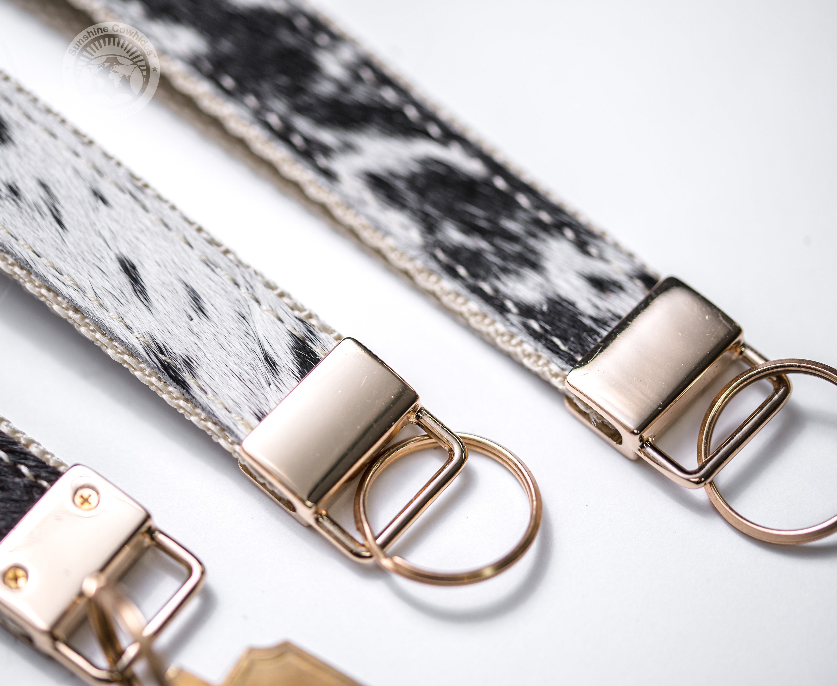 COWHIDE WRIST STRAP - COWHIDE KEYCHAIN*Black & White