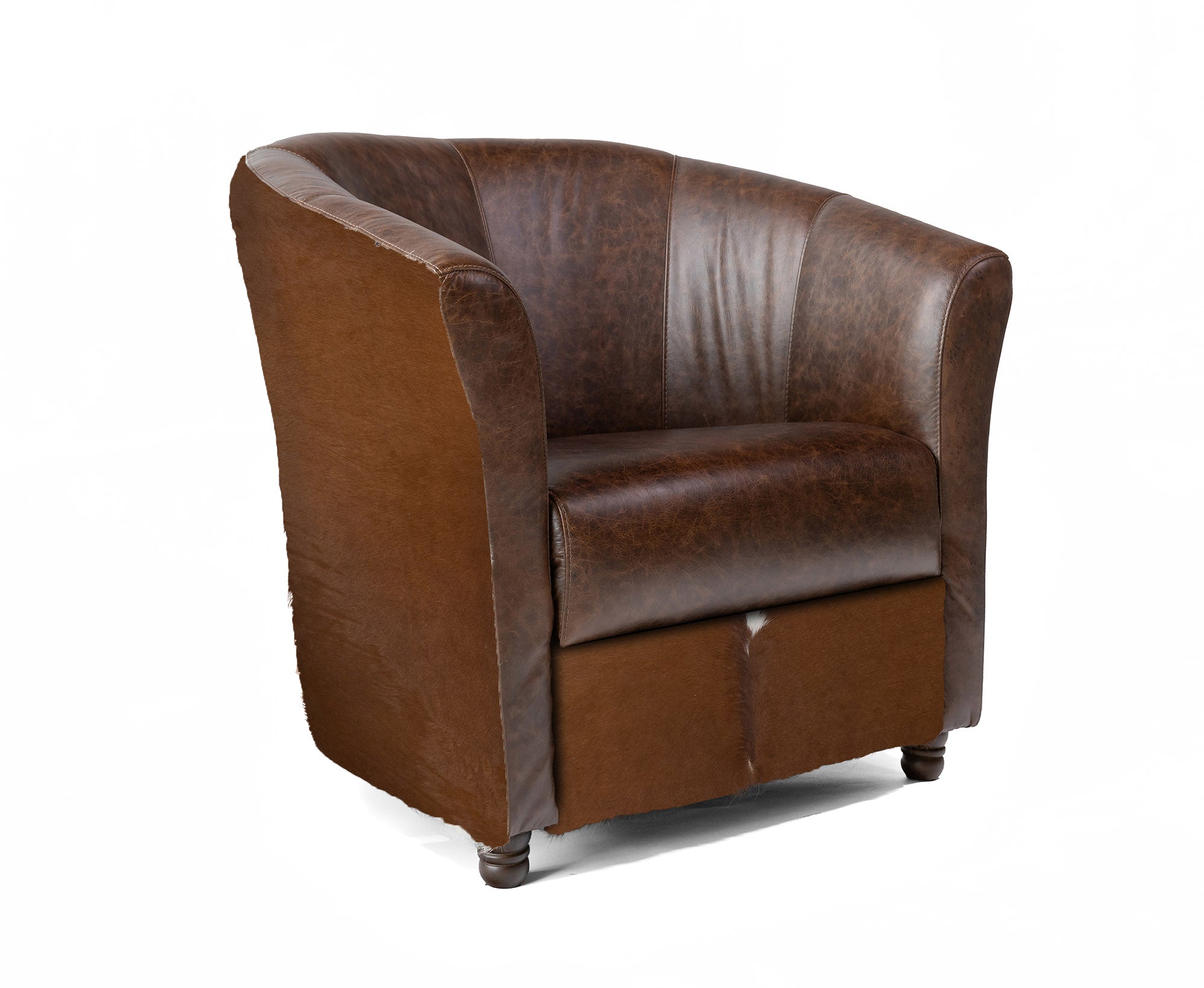 Custom Leather Barrel Chair - Brown Leather with Hereford Cowhide Accents