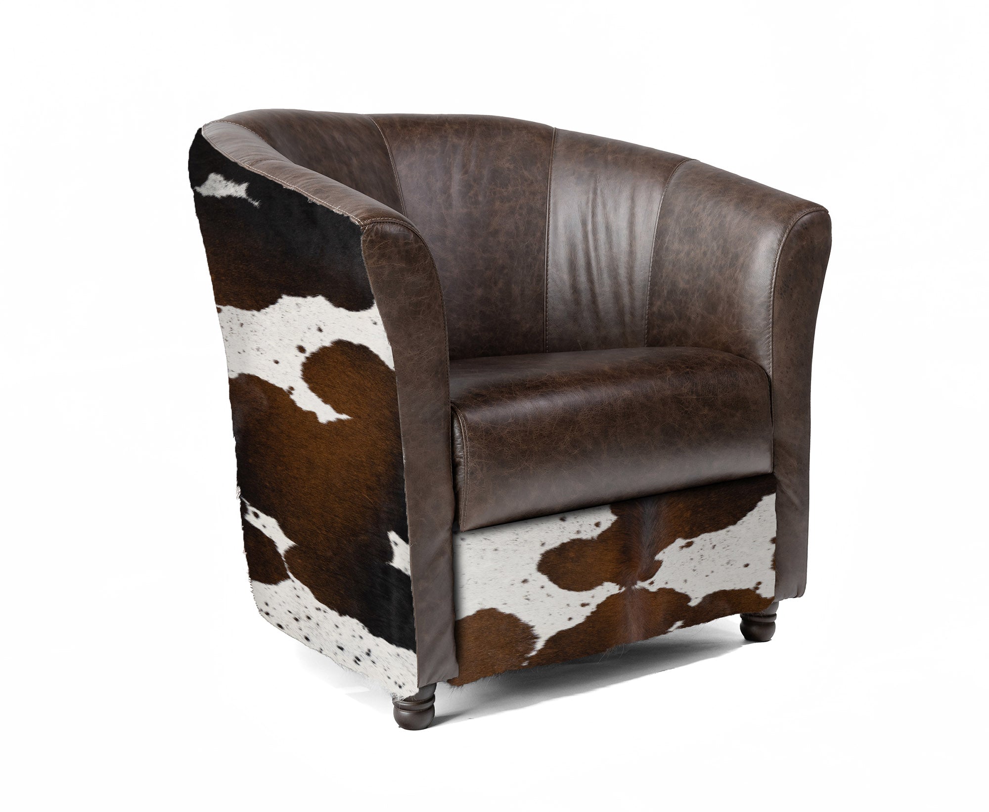 Custom Leather Barrel Chair - Brown Leather with Black and White Reddish Cowhide Accents