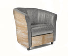 Custom Leather Barrel Chair - Grey Leather with Brindle Palomino Cowhide Accents