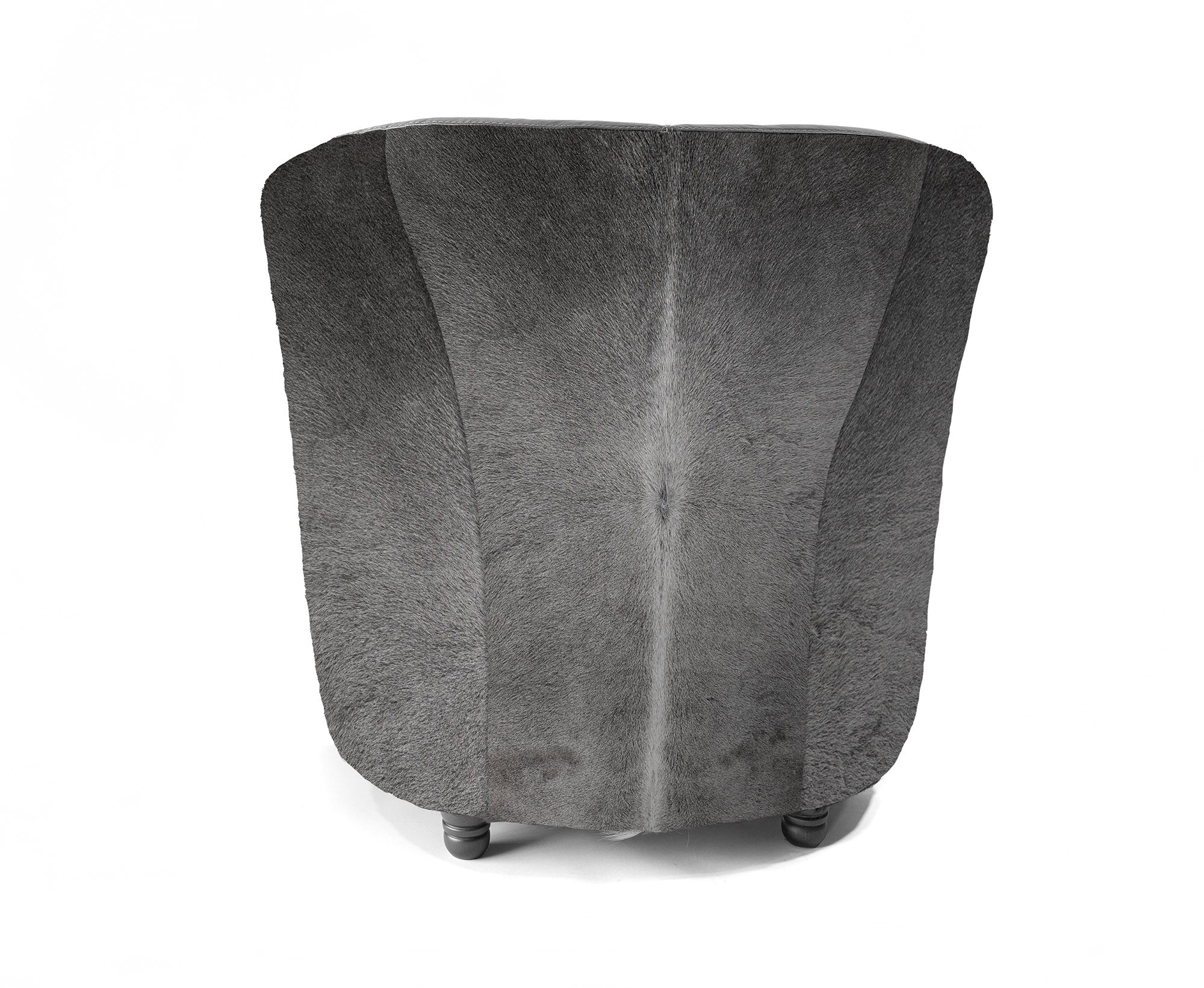 Custom Leather Barrel Chair - Grey Leather with Grey Cowhide Accents