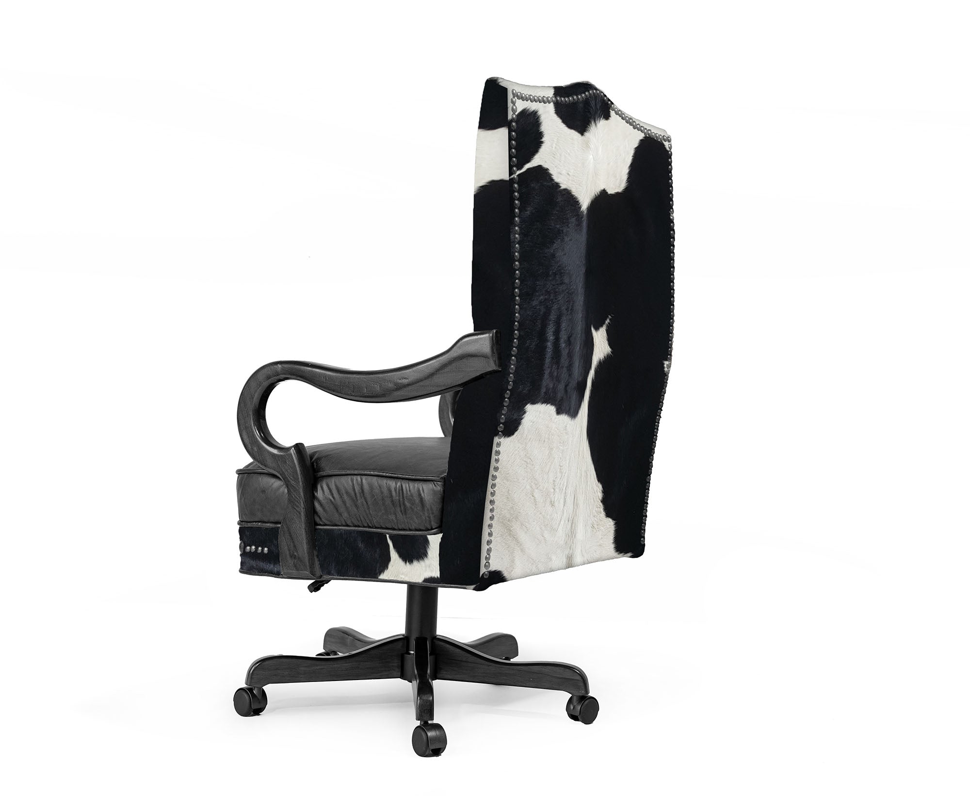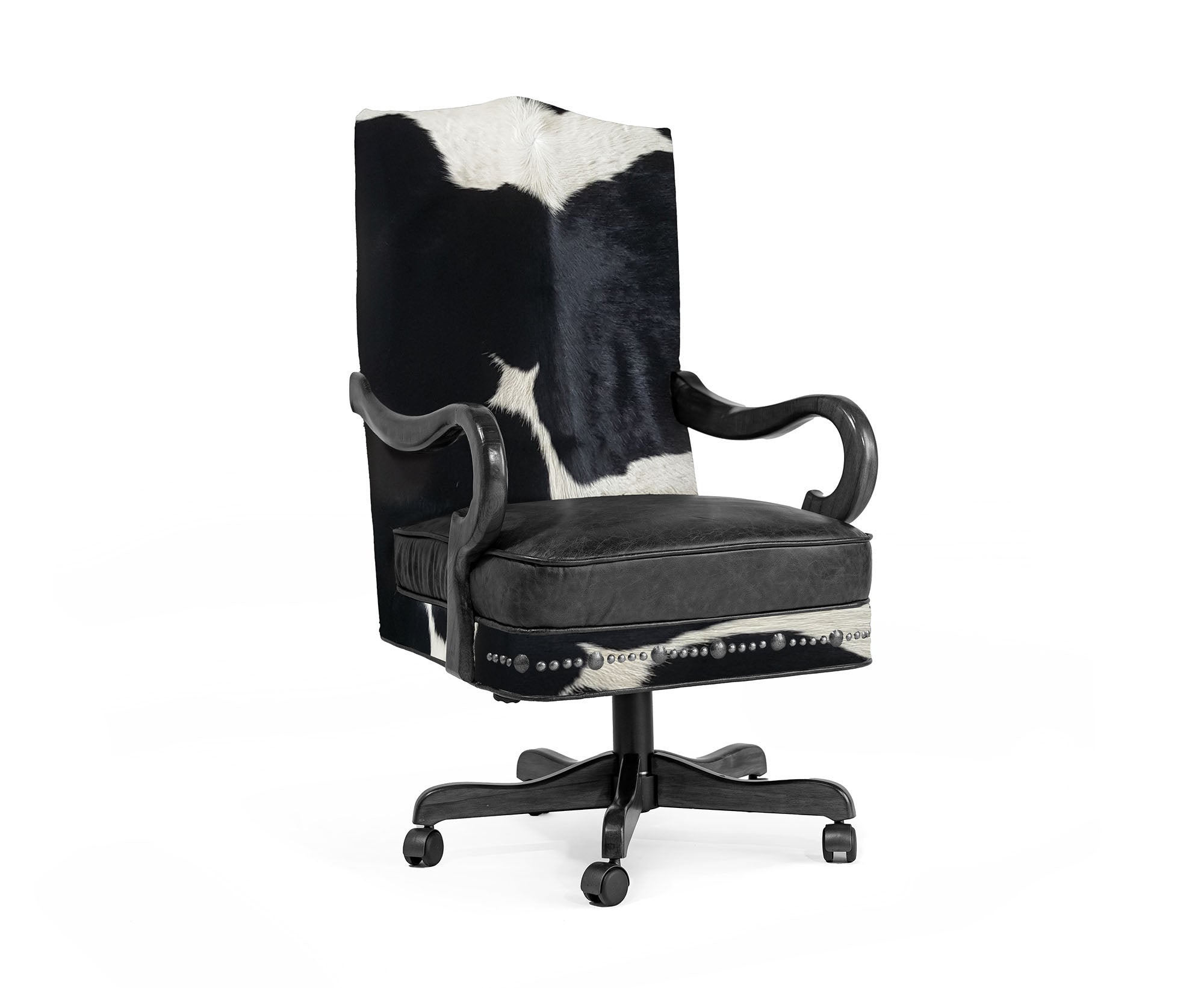Custom Office Chair with Hair On Cowhide Accents - Black & White