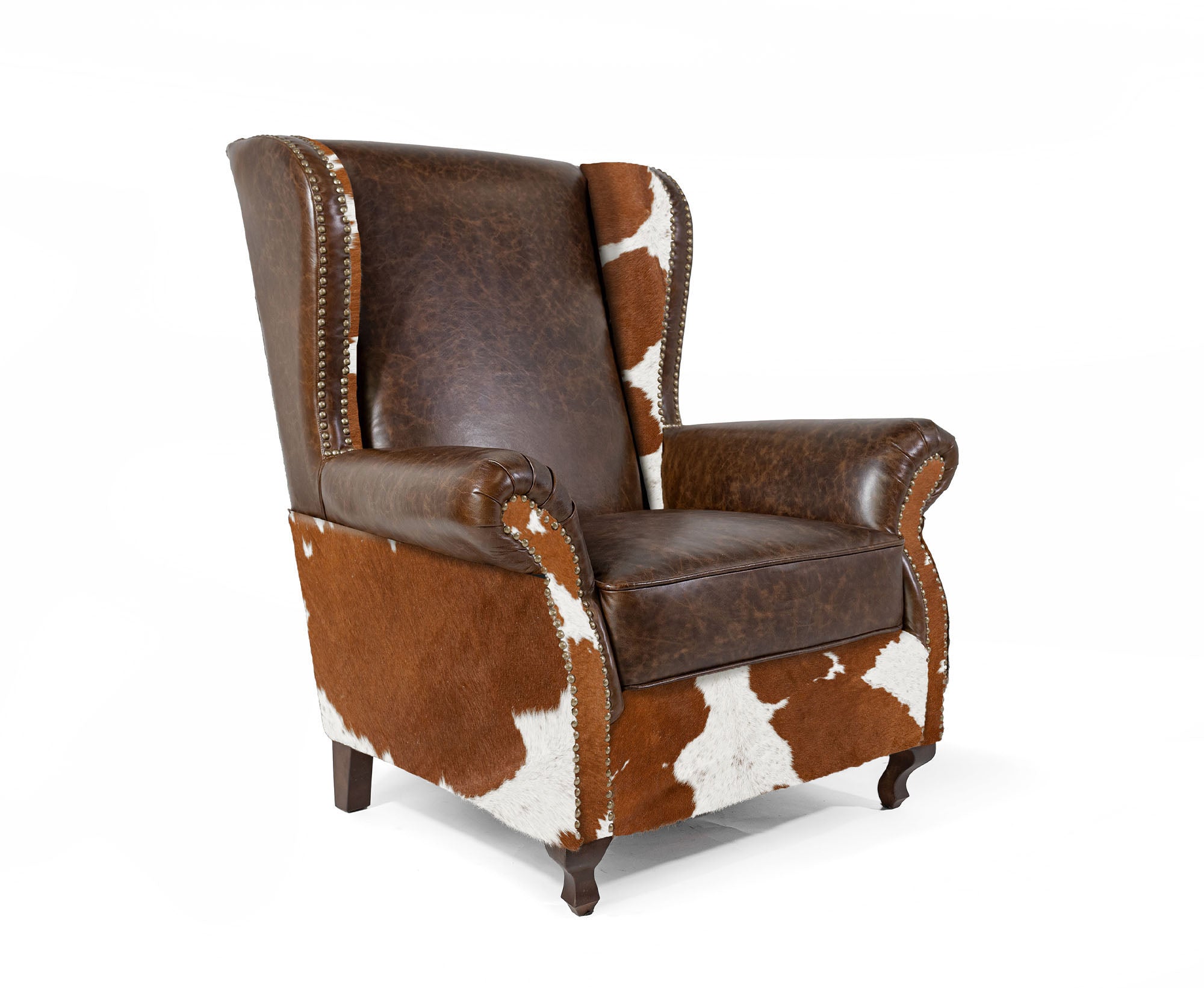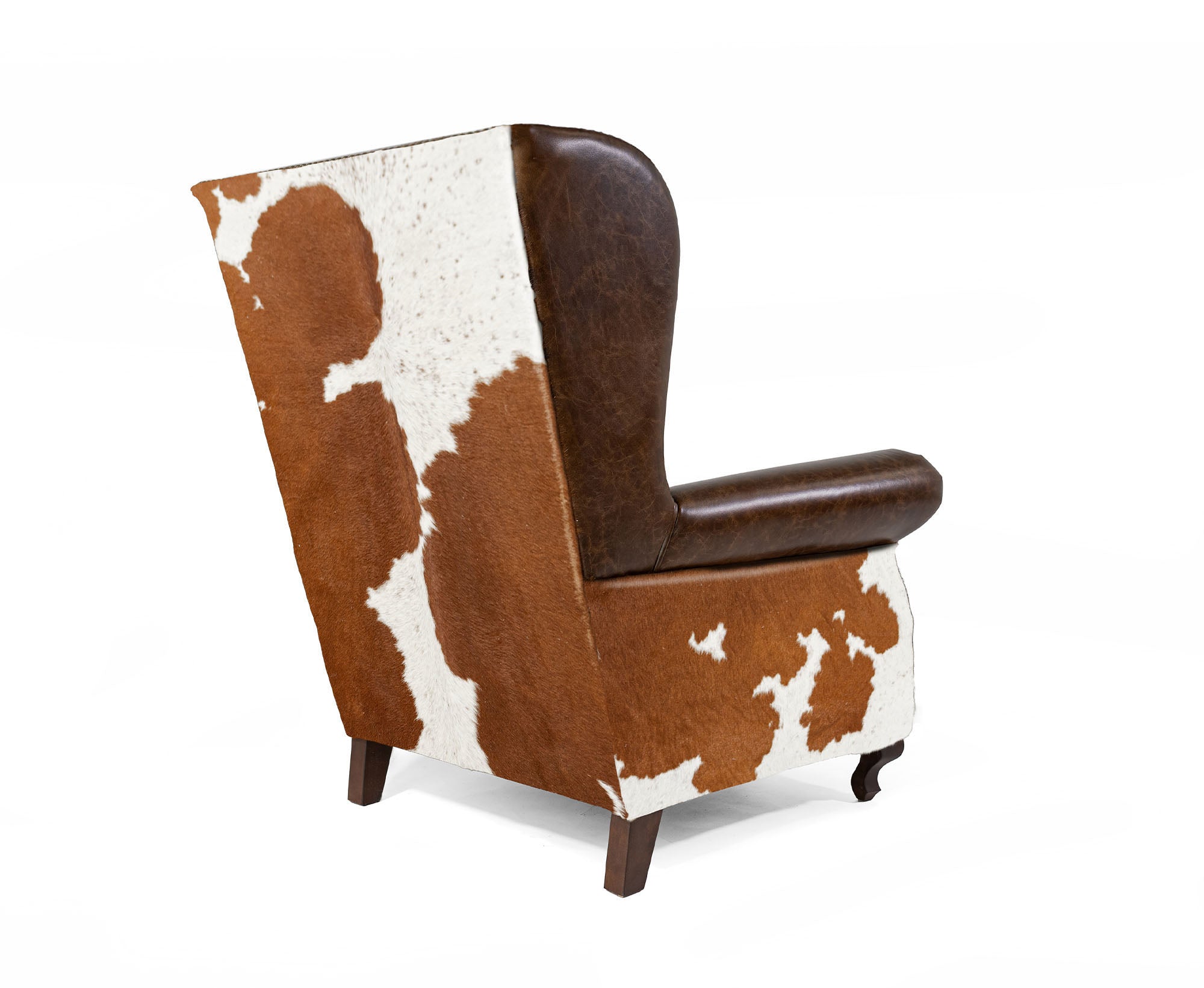 Custom Wingback Chair with Hair On Cowhide Accents - Brown & White