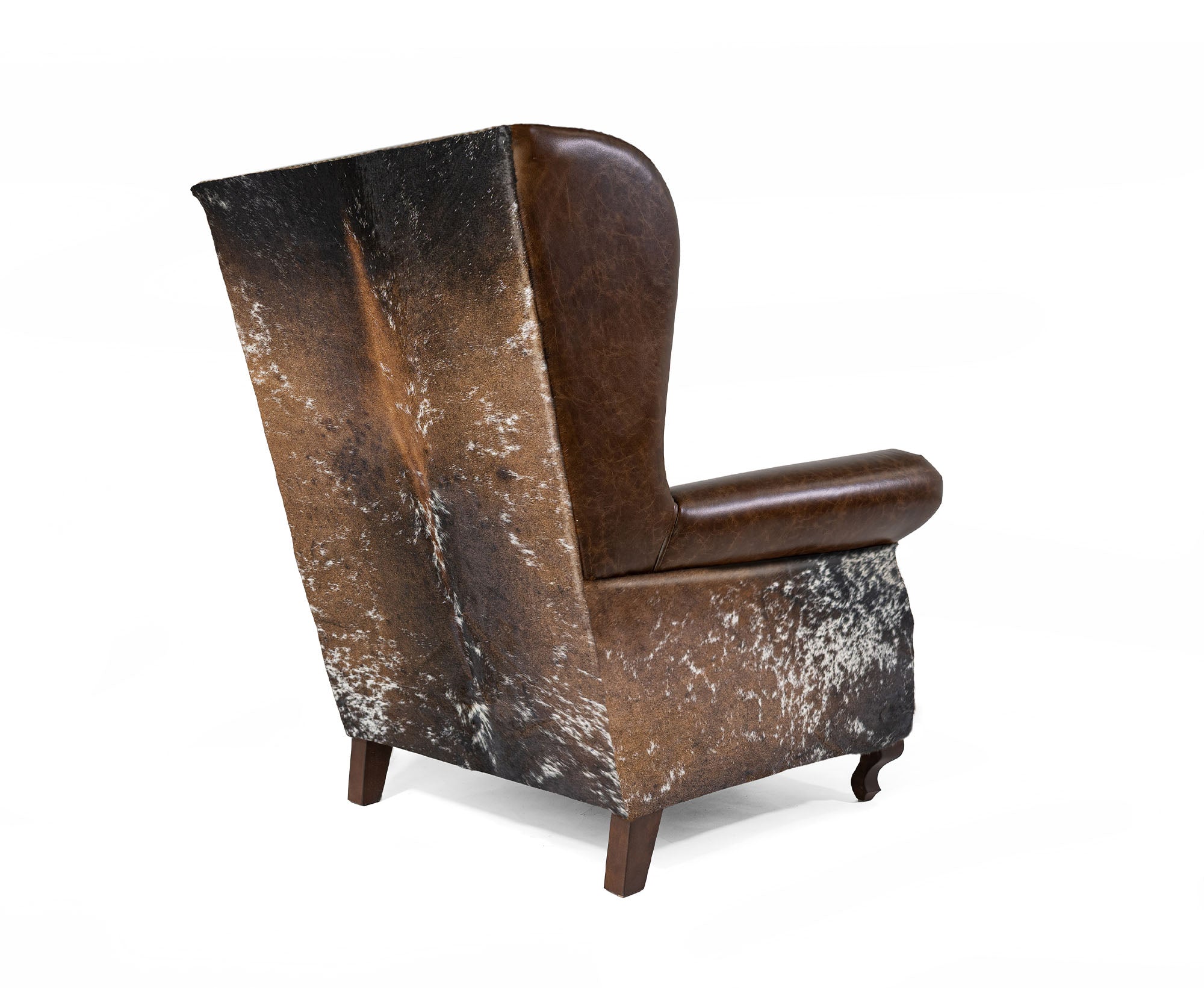 Custom Wingback Chair with Hair On Cowhide Accents - Exotic Tones